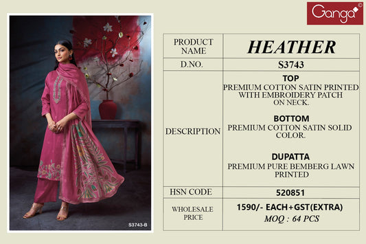 हीदर 3743 गंगा प्रीमियम कॉटन प्लाज़ो स्टाइल सूट थोक मूल्य