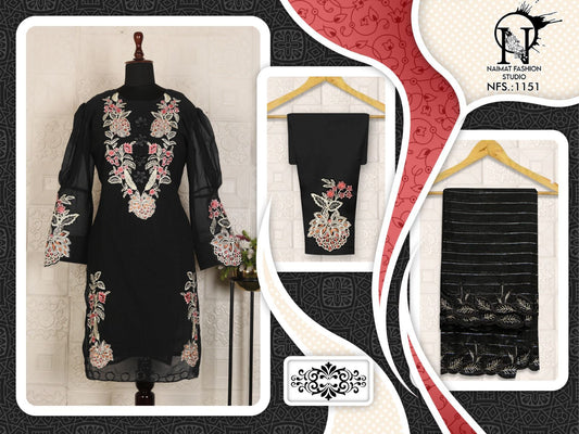 Nfs 1151 ब्लैक-व्हाइट नैमत फैशन स्टूडियो प्योर फॉक्स पाकिस्तानी रेडीमेड सूट थोक विक्रेता भारत