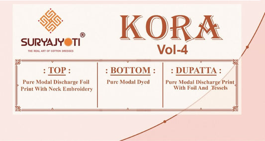 कोरा वॉल्यूम 4 सूर्यज्योति मॉडल पैंट स्टाइल सूट निर्यातक अहमदाबाद