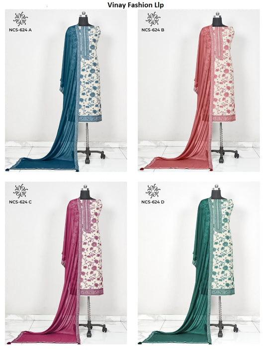 एनसीएस 623-624 विनय फैशन एलएलपी विस्कोस मसलिन सलवार सूट थोक दर