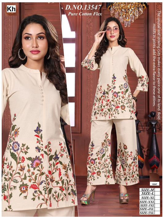 डिज़ाइन 13546-13547 Kh कॉटन को-ऑर्ड सेट थोक विक्रेता