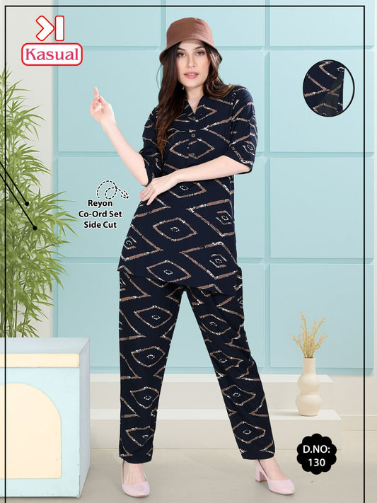 डिज़ाइन 127-138 कैज़ुअल रेयॉन को-ऑर्ड सेट थोक दर