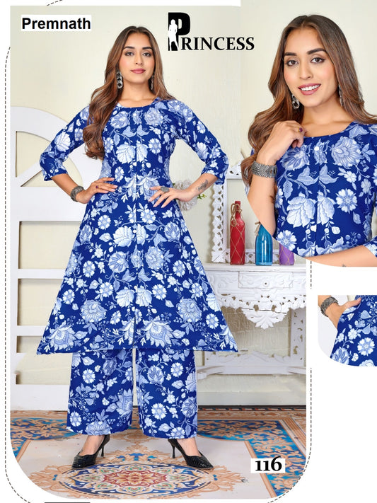 प्रिंट टू प्रिंट 0807 डायमंड क्वीन रेयॉन 22Kg को-ऑर्ड सेट थोक मूल्य