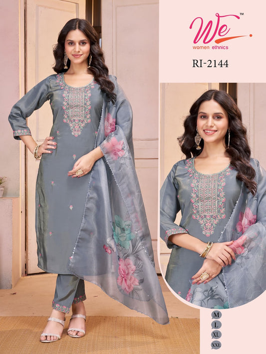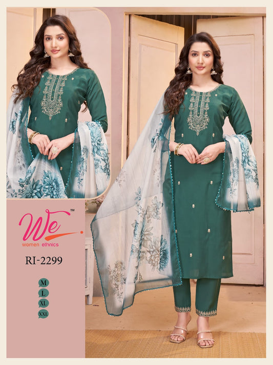 Ri 2187-2189 महिला एथनिक रोमन सिमर रेडीमेड पैंट स्टाइल सूट निर्यातक