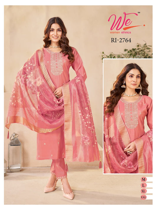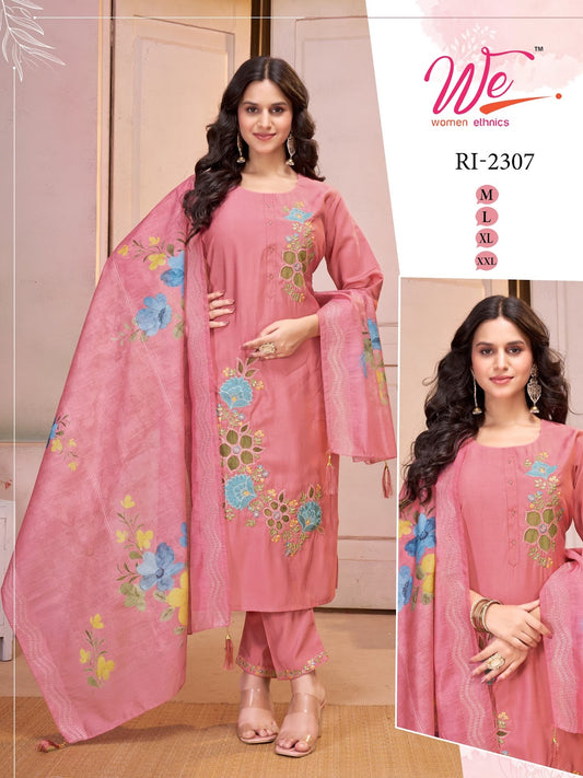 Ri 2763-2768 महिला एथनिक रोमन सिमर रेडीमेड पैंट स्टाइल सूट निर्माता अहमदाबाद