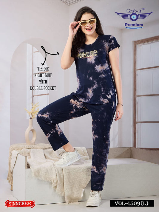 टाई डाई वॉल्यूम 4509 एल ग्रैब इट सिंकर पायजामा नाइट सूट सप्लायर अहमदाबाद