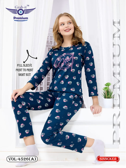 वॉल्यूम 4526 ए ग्रैब इट सिंकर फुल स्लीव नाइट सूट होलसेल