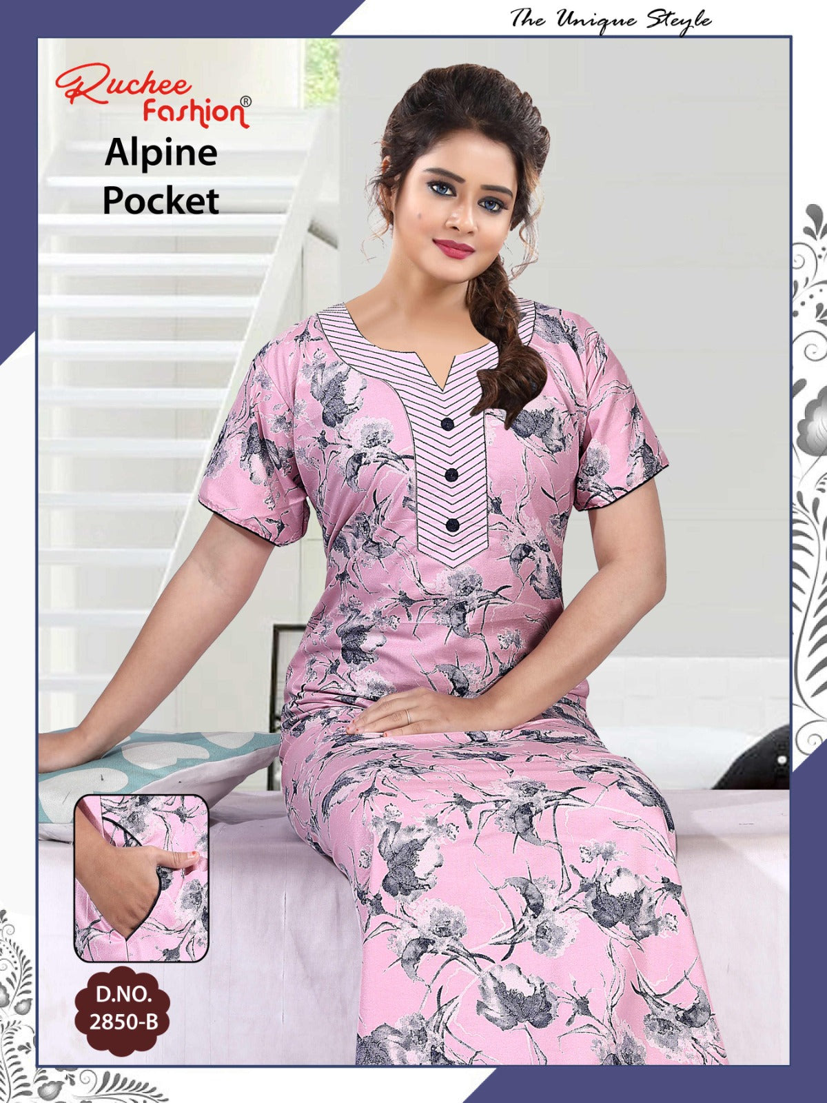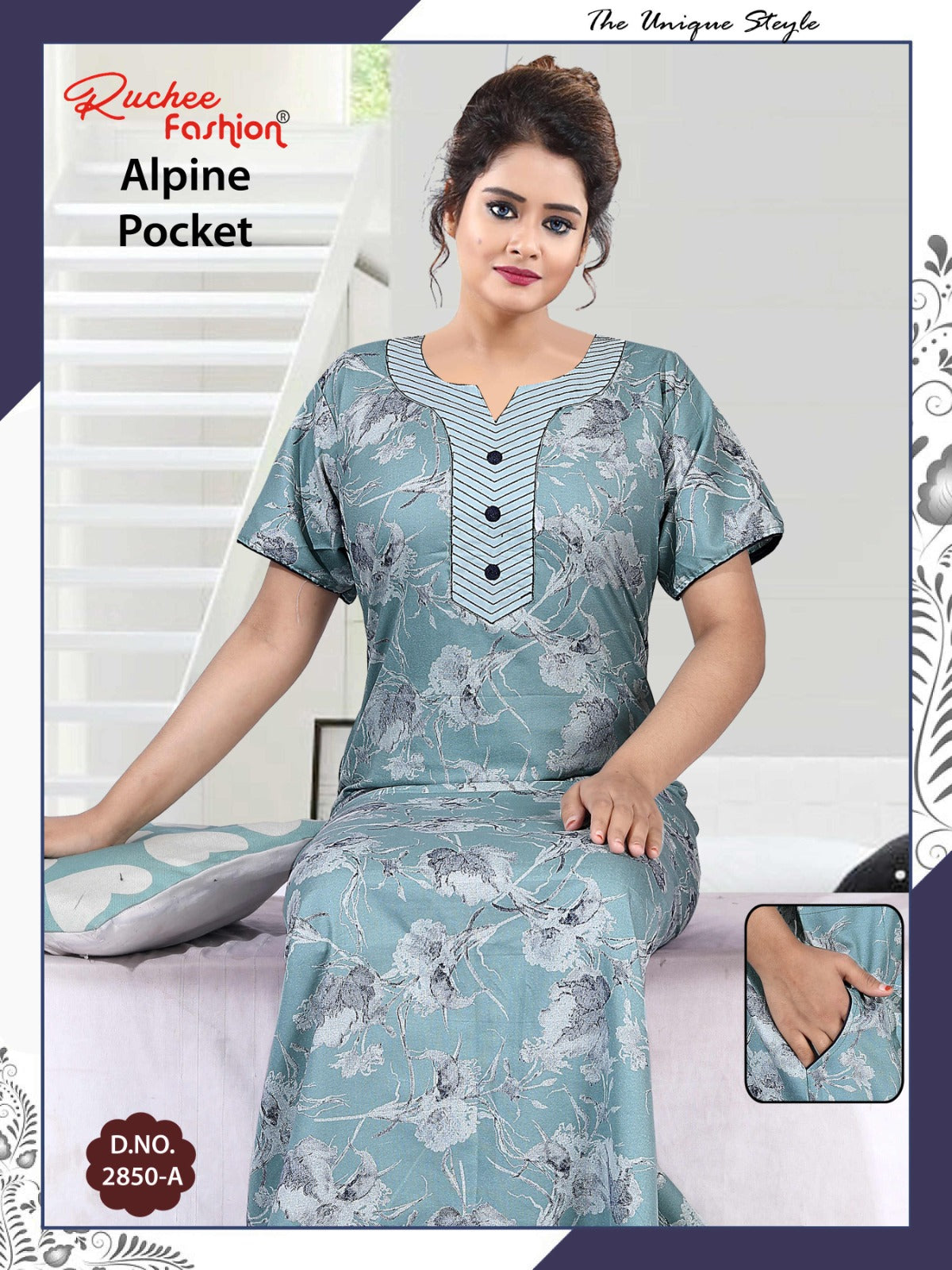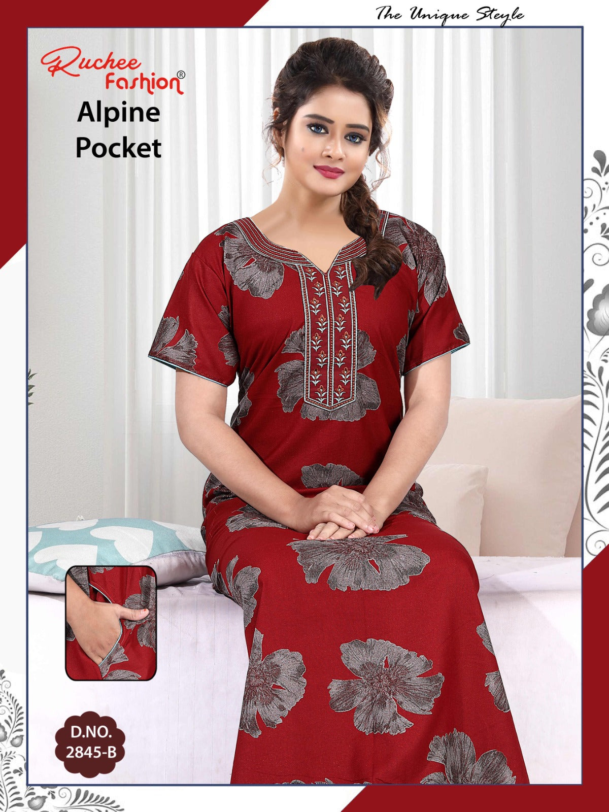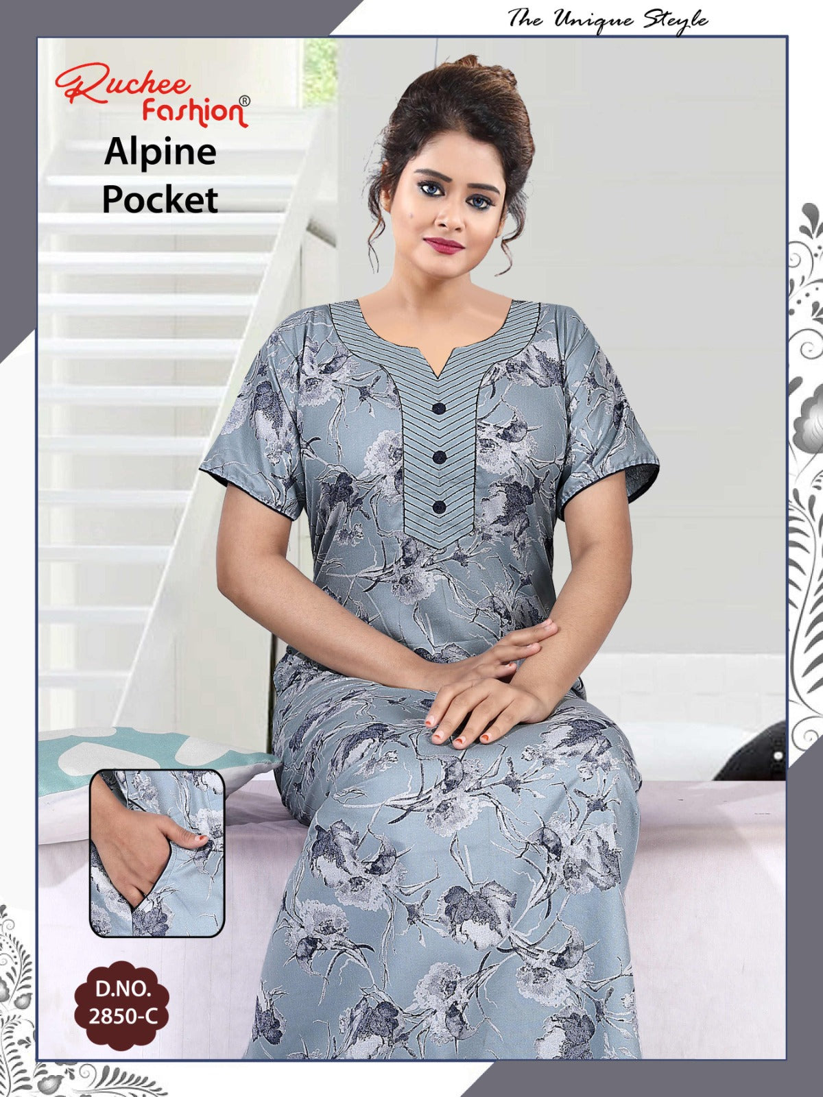 अल्पाइन पॉकेट 150325 रुची फैशन नाइट गाउन की कीमत और कपड़े का विवरण: