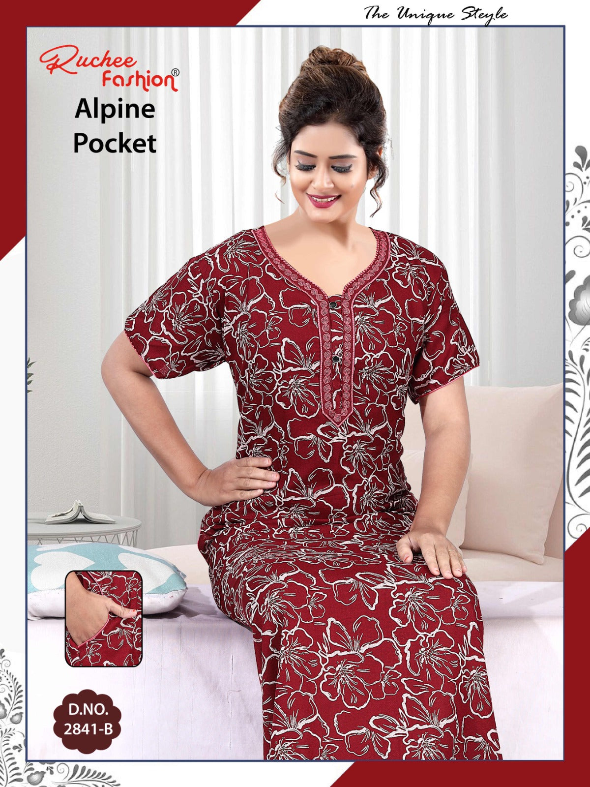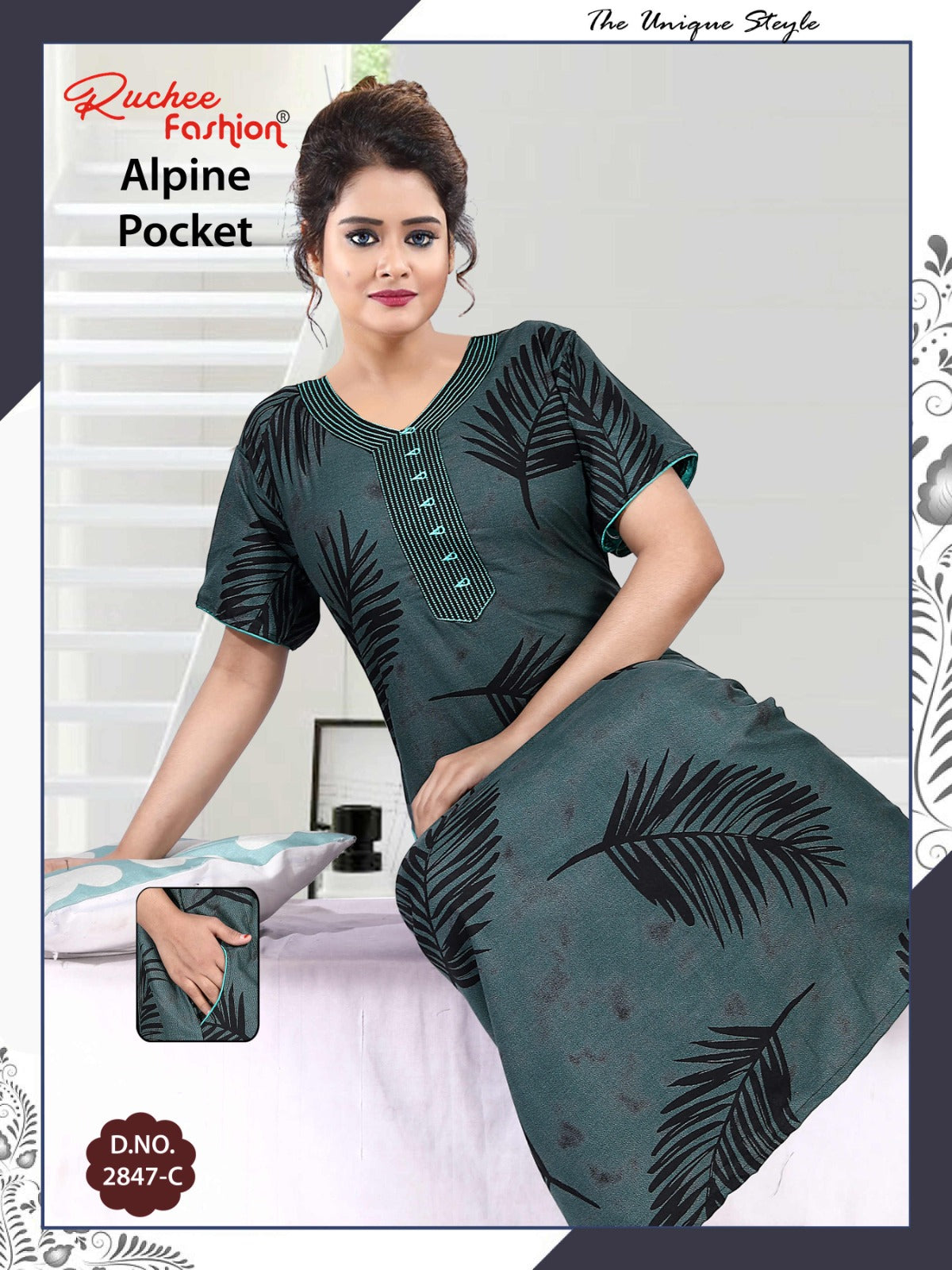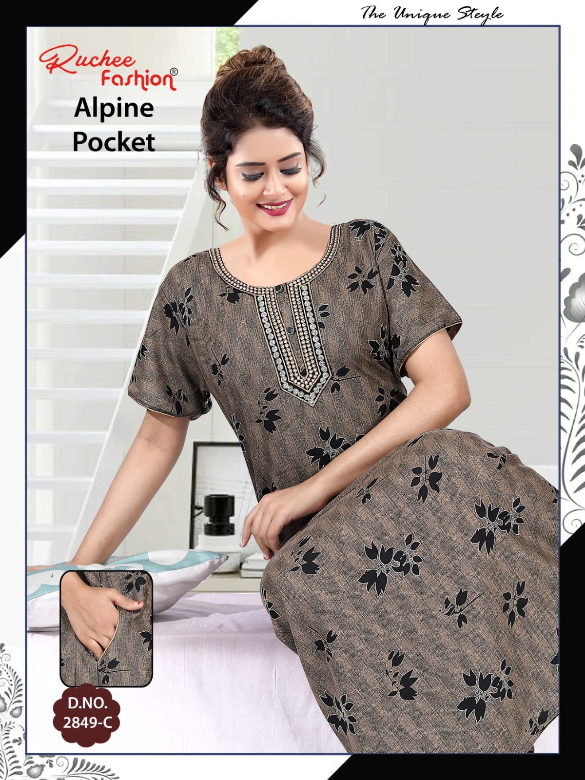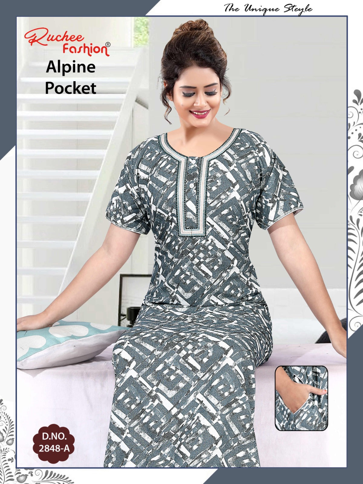 अल्पाइन पॉकेट 150325 रुची फैशन नाइट गाउन की कीमत और कपड़े का विवरण:
