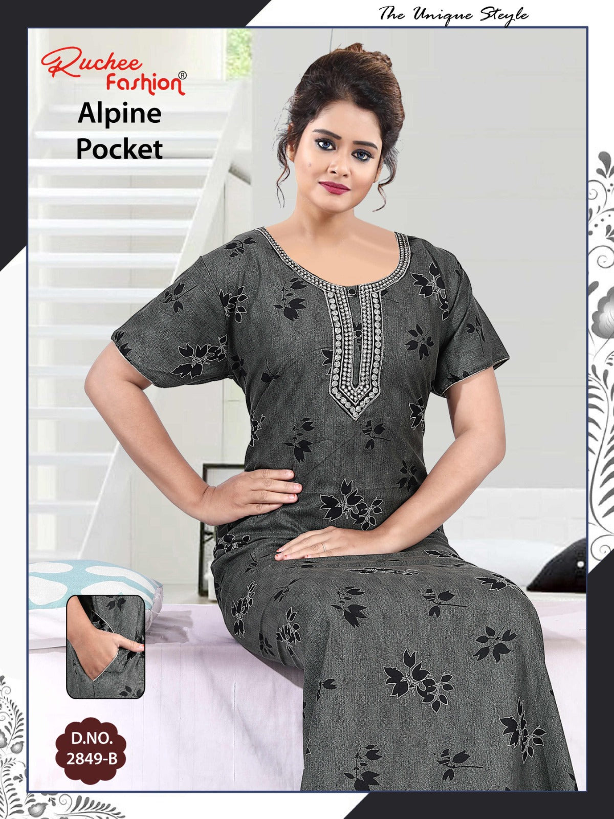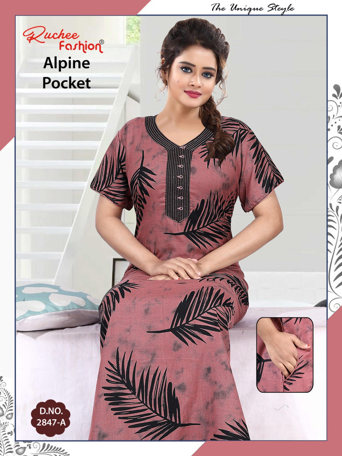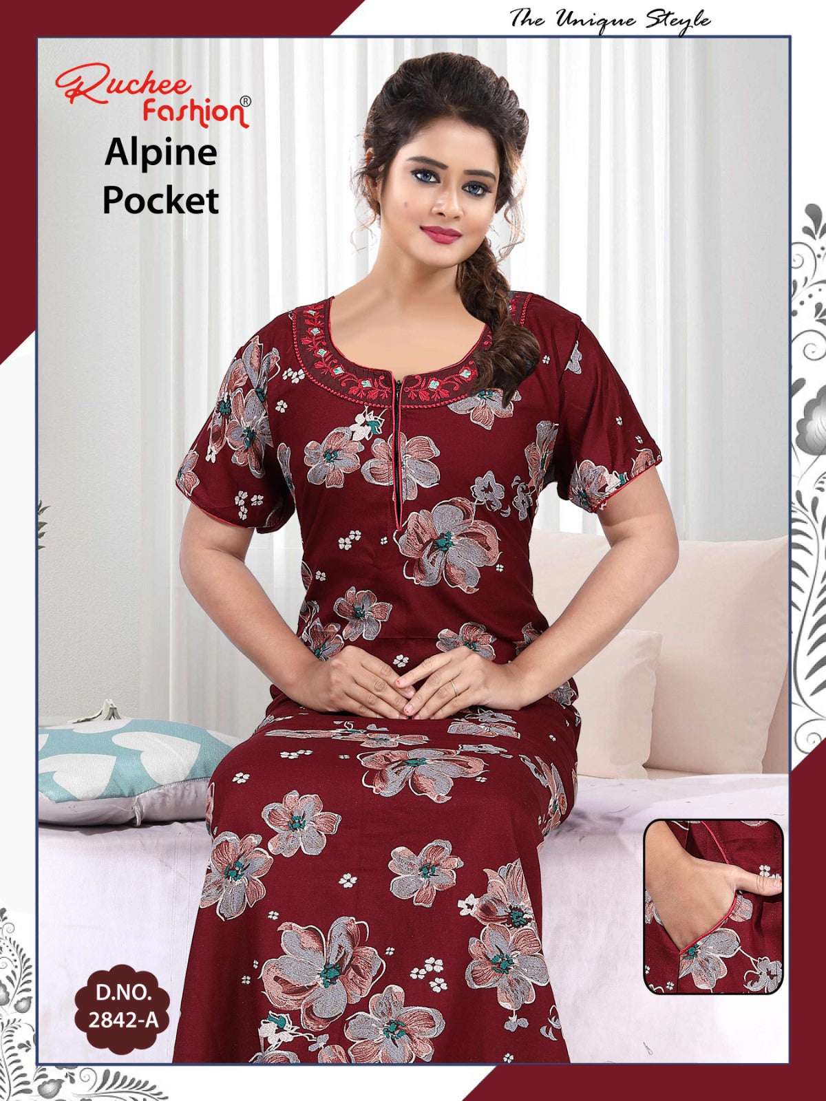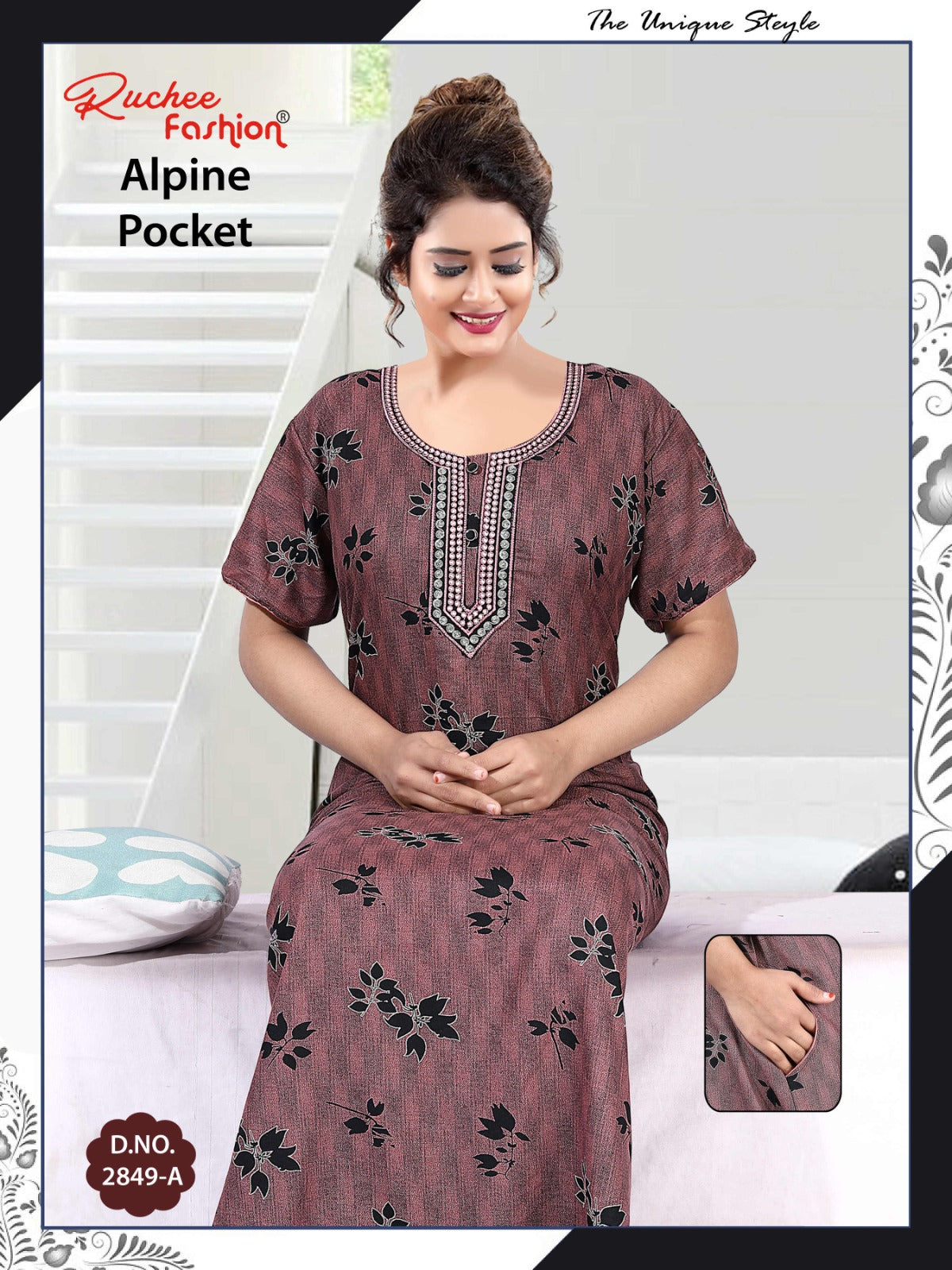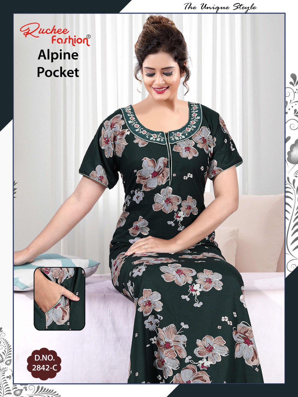 अल्पाइन पॉकेट 150325 रुची फैशन नाइट गाउन