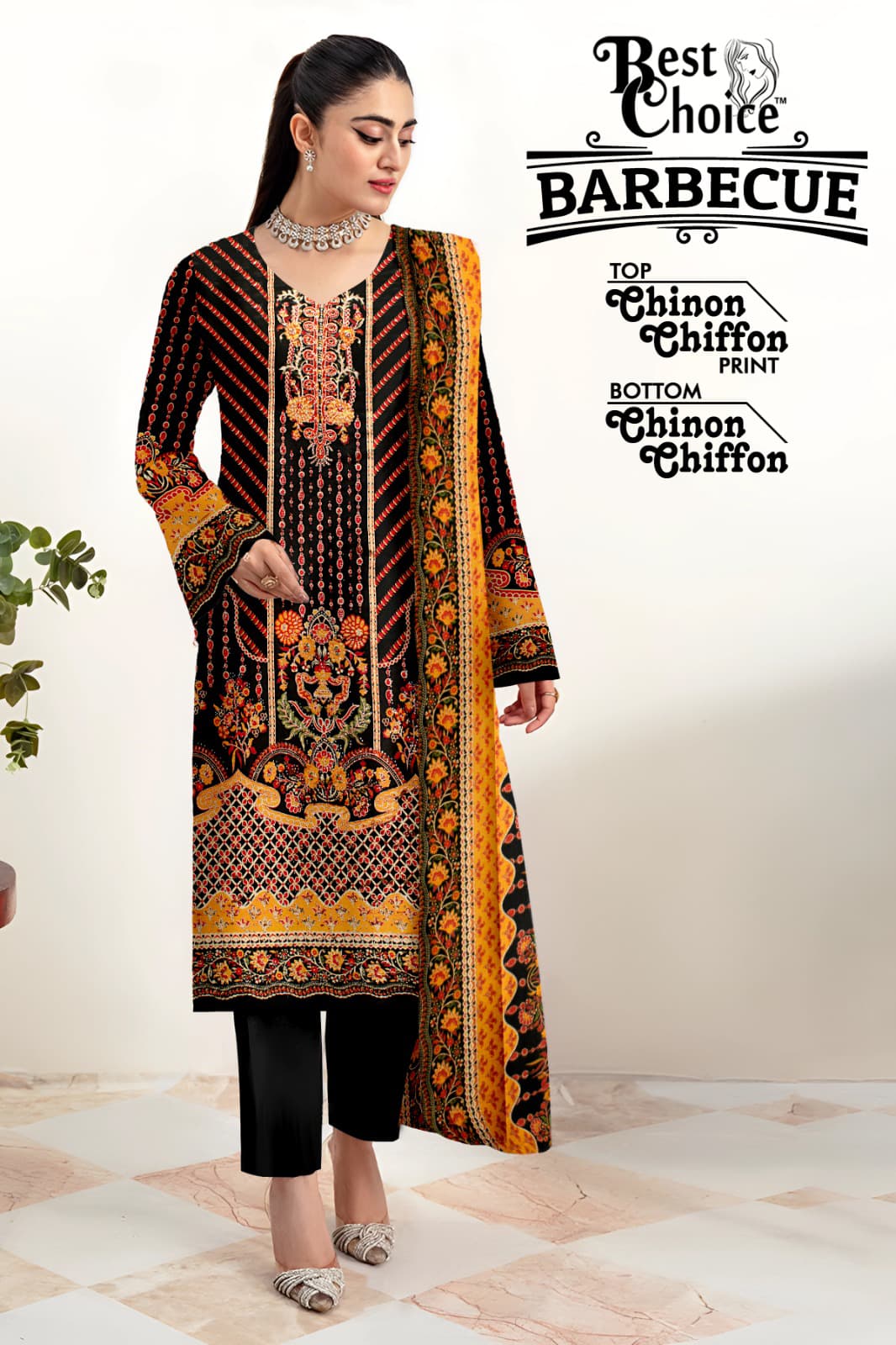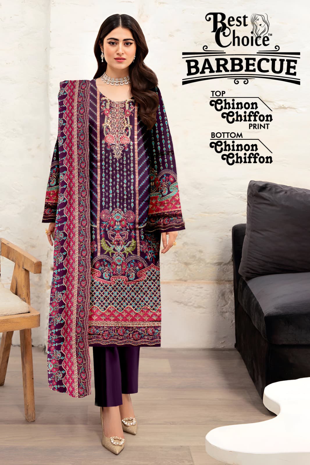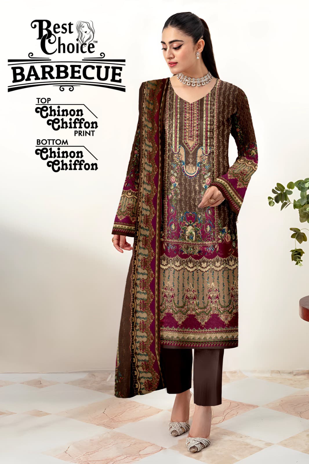 बारबेक्यू बेस्ट चॉइस चिनॉन शिफॉन कराची सलवार सूट निर्माता