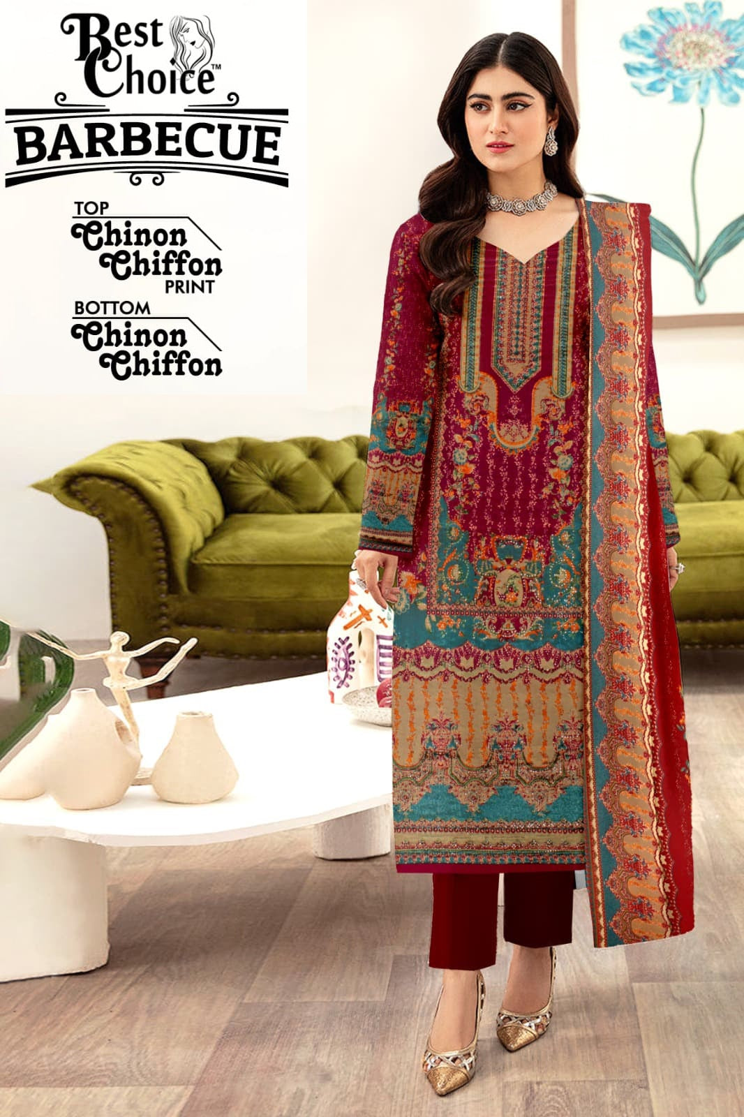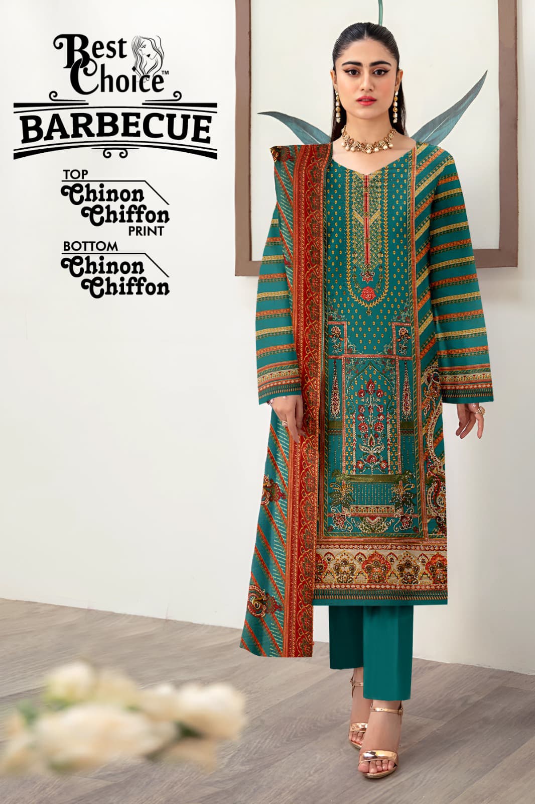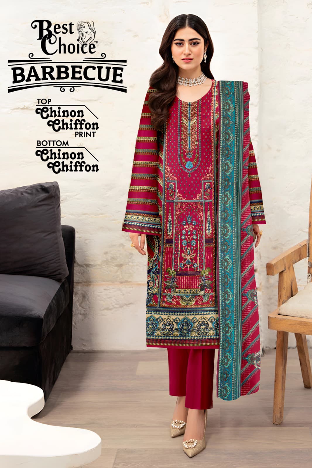 बारबेक्यू बेस्ट चॉइस चिनॉन शिफॉन कराची सलवार सूट निर्माता