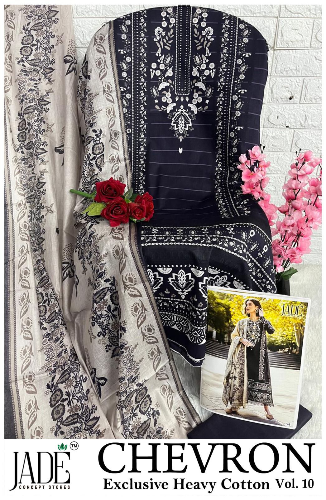 शेवरॉन वॉल्यूम 10 एक्सक्लूसिव हैवी कॉटन जेड कराची सलवार सूट की कीमत और फ़ैब्रिक विवरण: