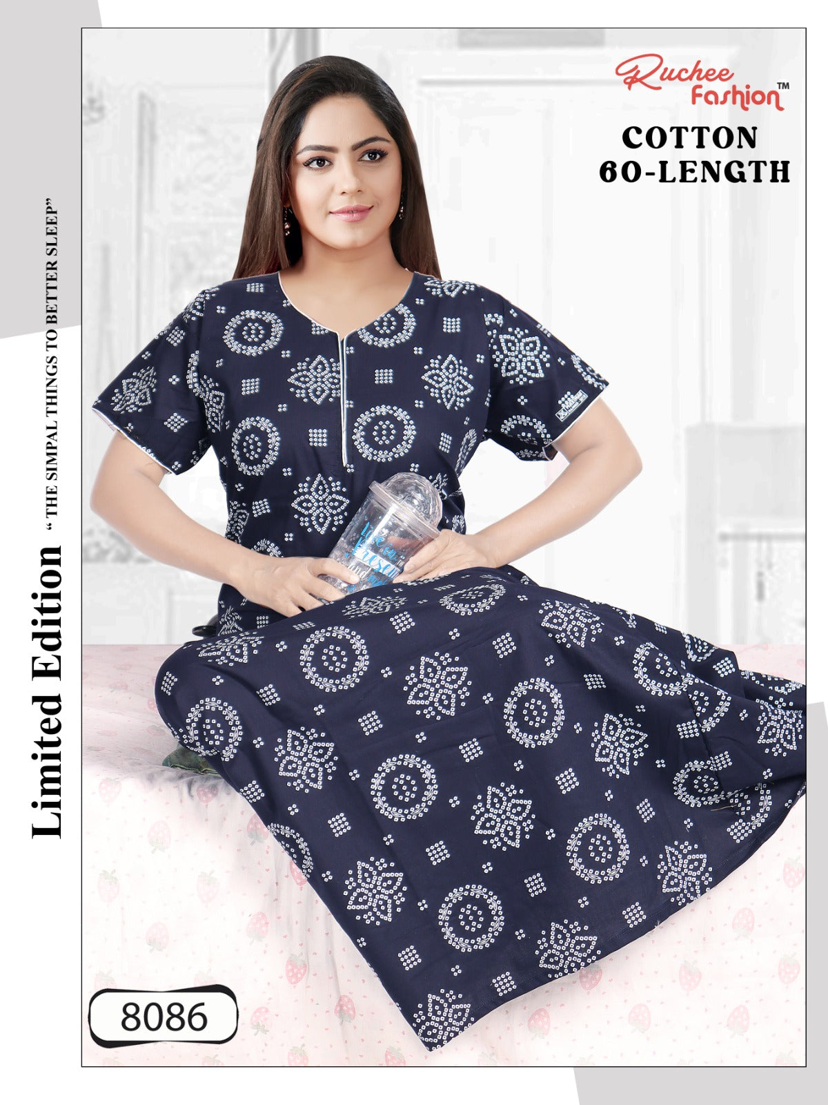 कॉटन L-60 रुची फैशन नाइट गाउन