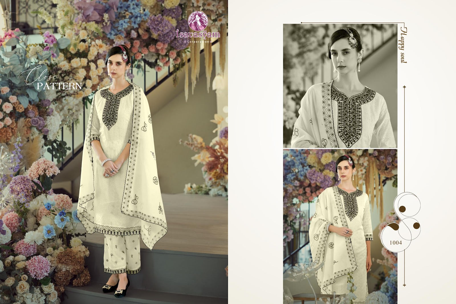 क्रीम कशिश इसावश्यम कॉटन फुल चिकन वर्क रेडीमेड प्लाज़ो स्टाइल सूट