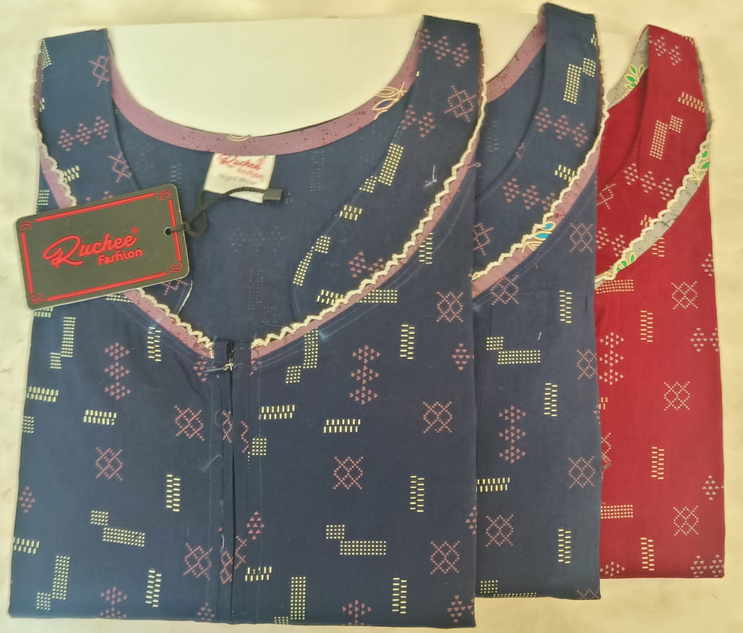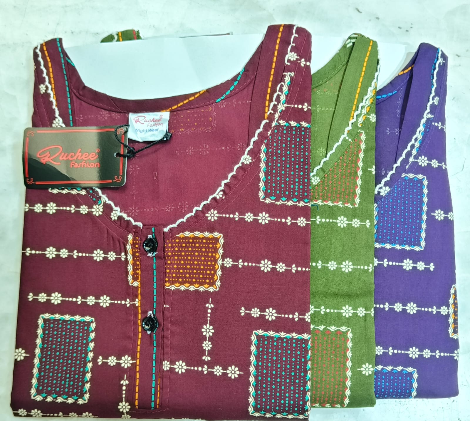 - फ़ैब्रिक विवरण: कॉटन पॉकेट नाइटी लंबाई - 56 लगभग न्यूनतम ऑर्डर 12 पीस