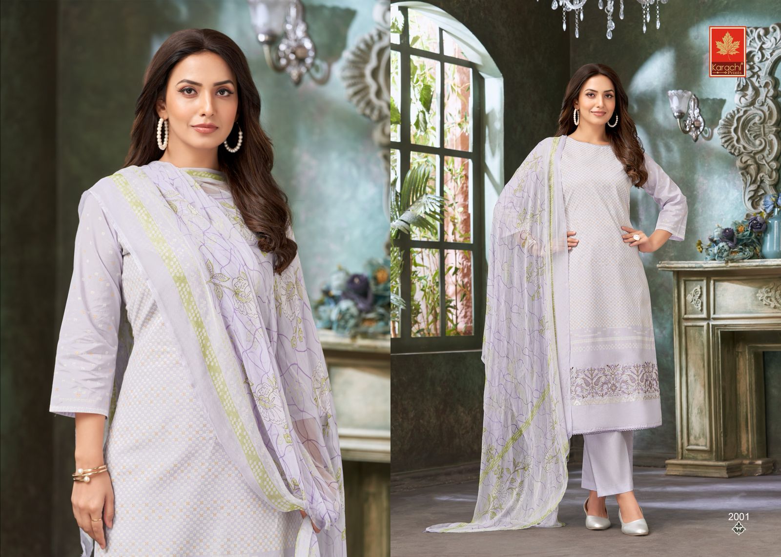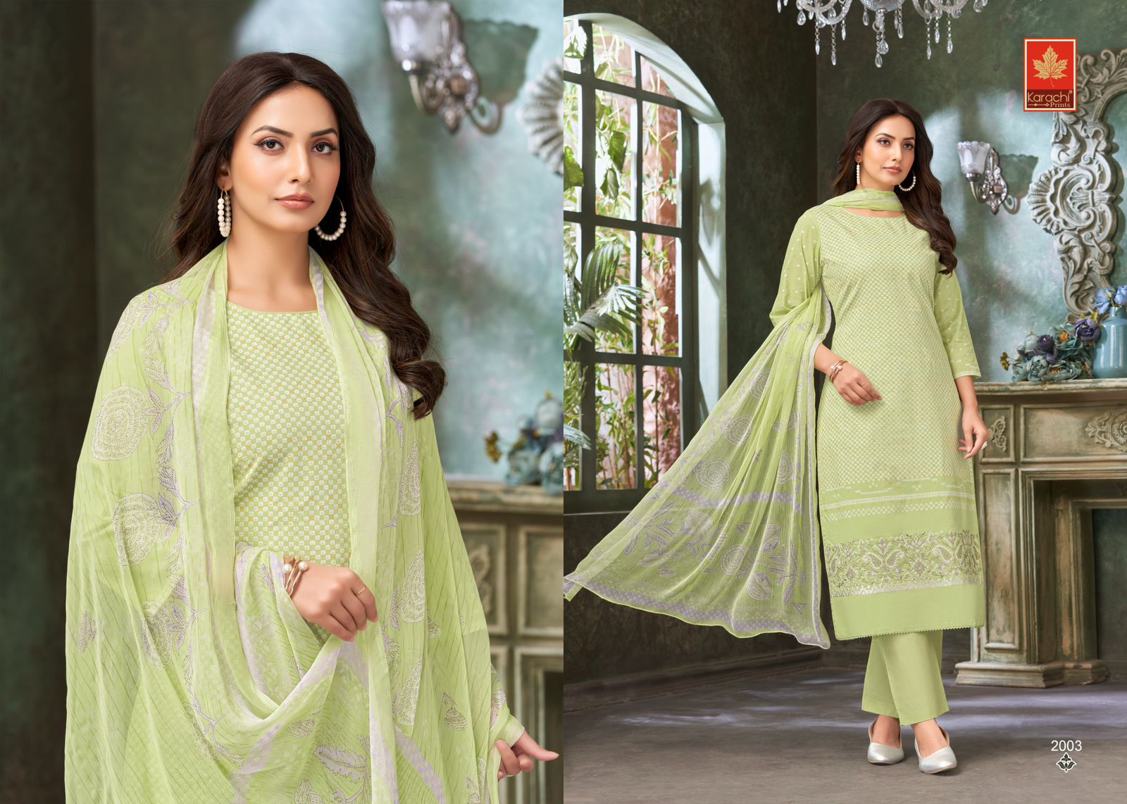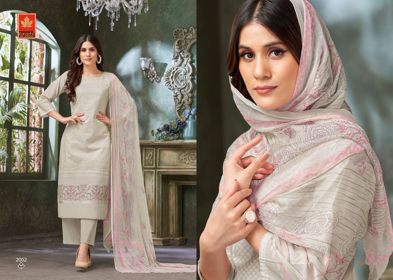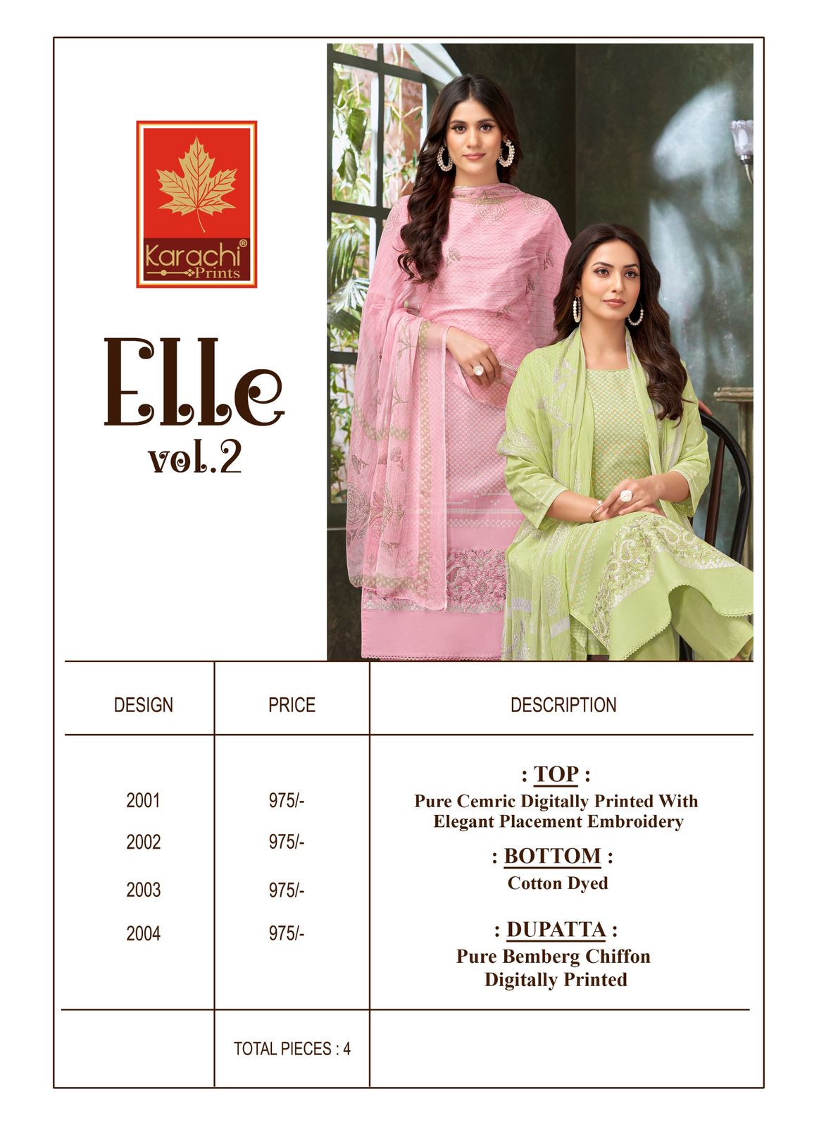 एले वॉल्यूम 2 कराची प्रिंट्स कैम्ब्रिक एम्ब्रायडरी वर्क पैंट स्टाइल सूट
