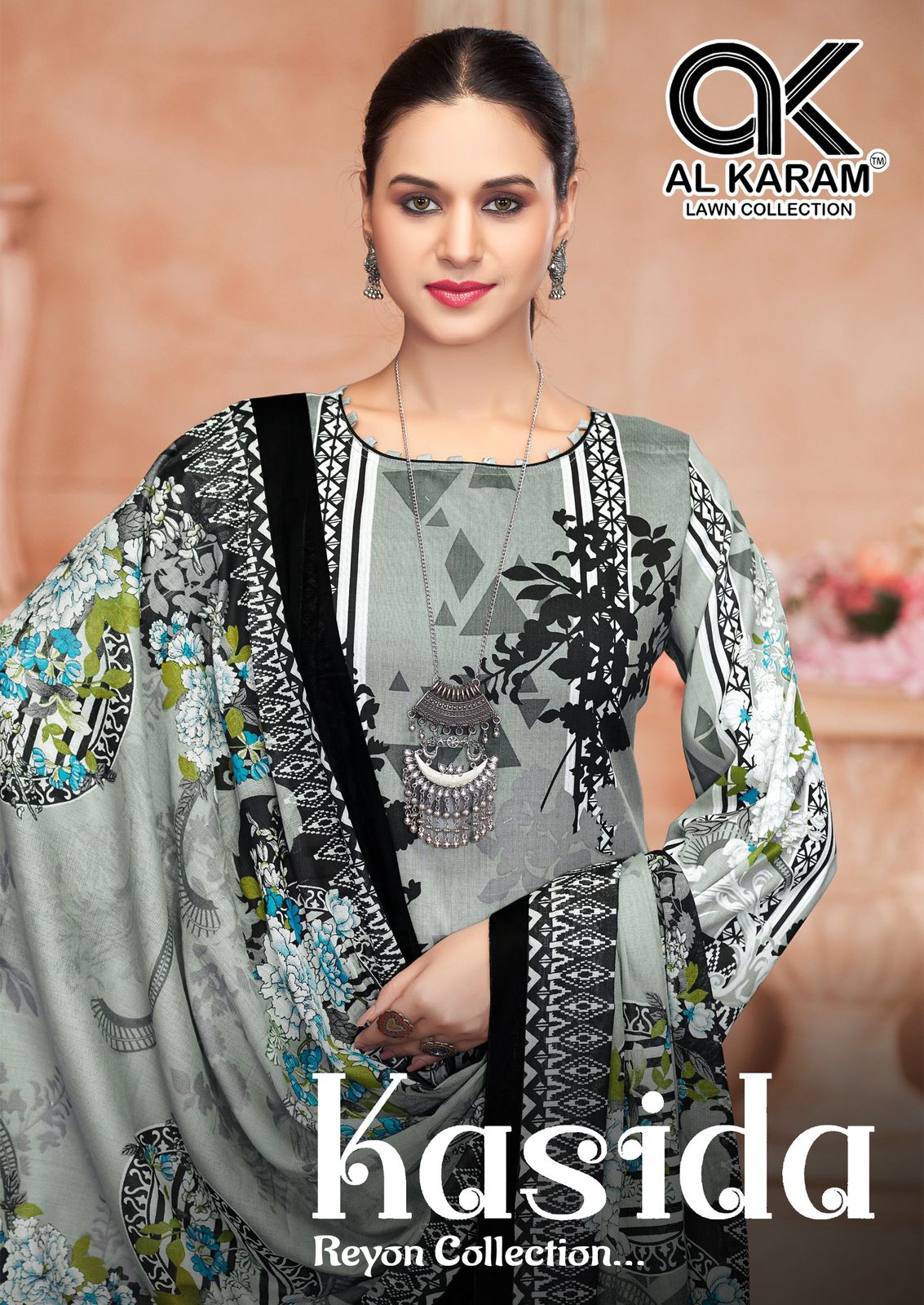 कासिदा वॉल्यूम 1 अल करम विस्कोस रेयॉन डिजिटल प्रिंट कराची सलवार सूट