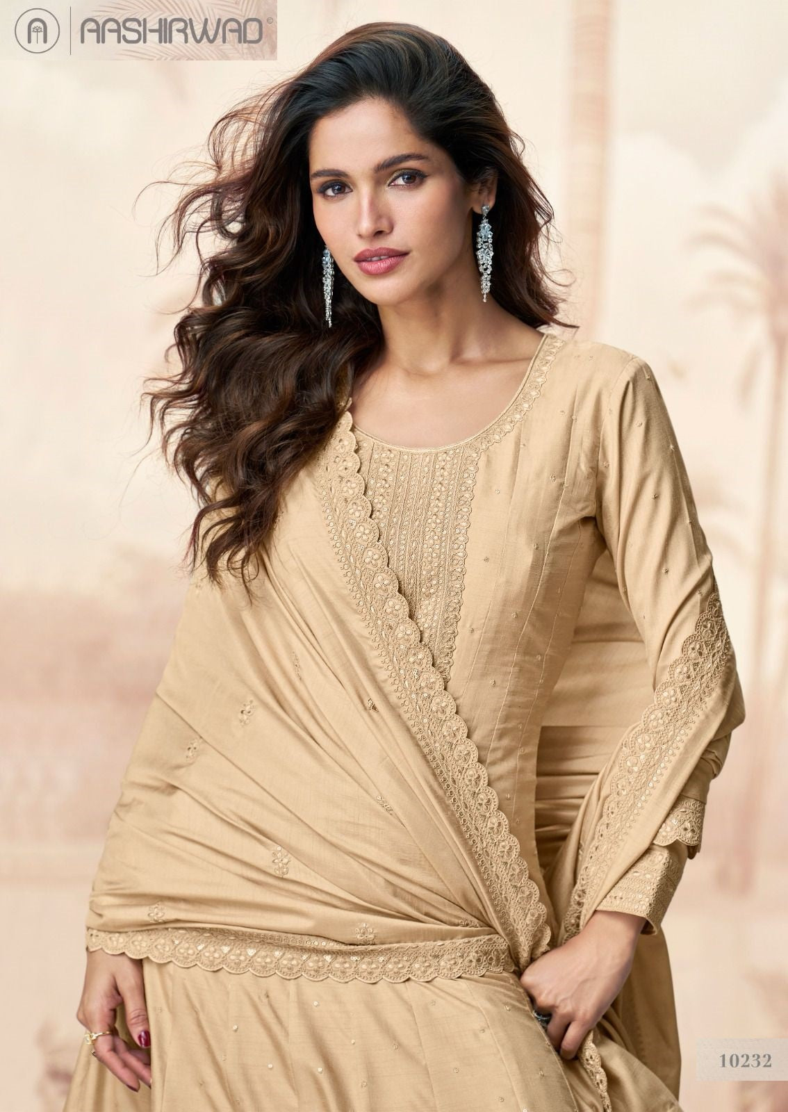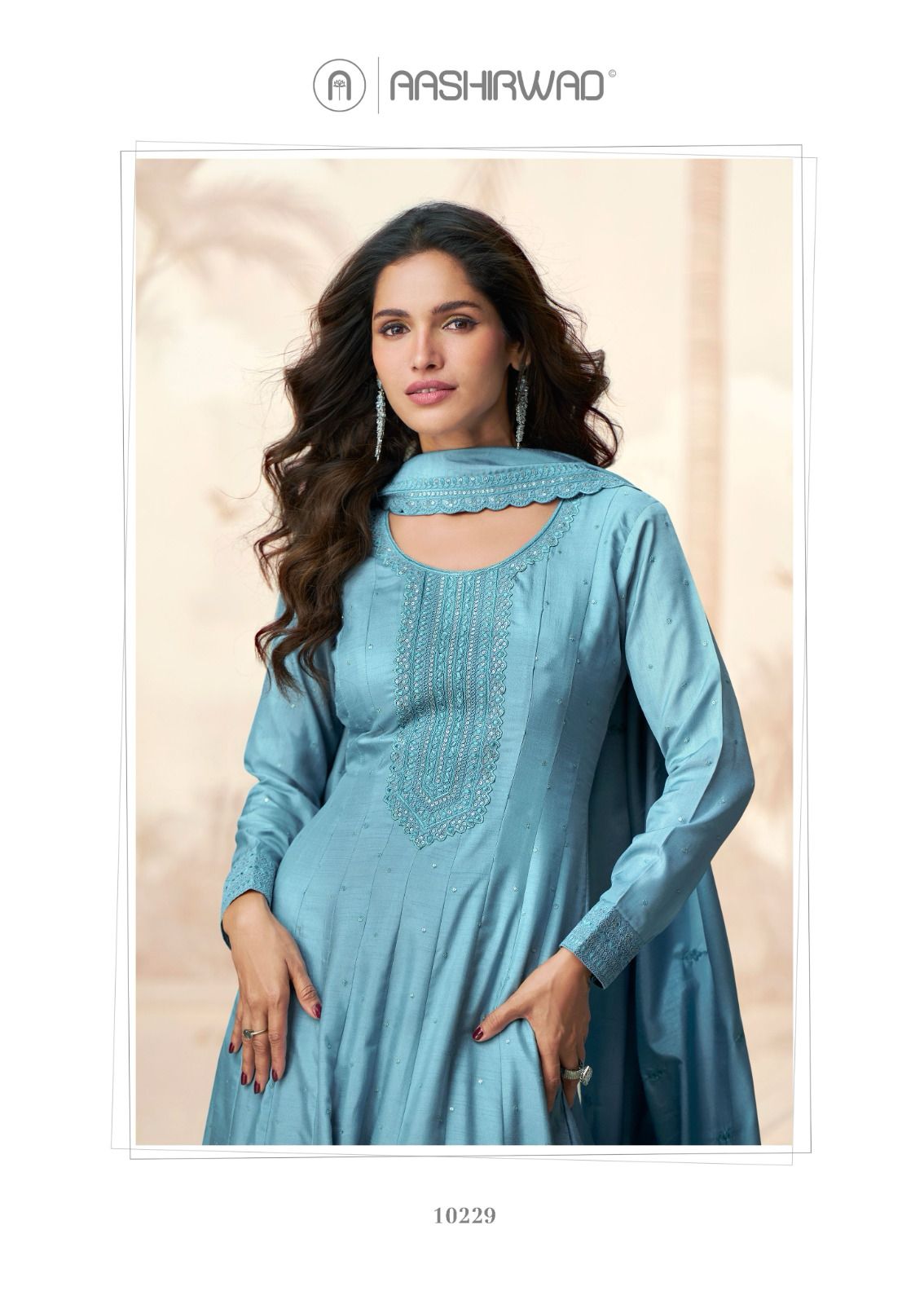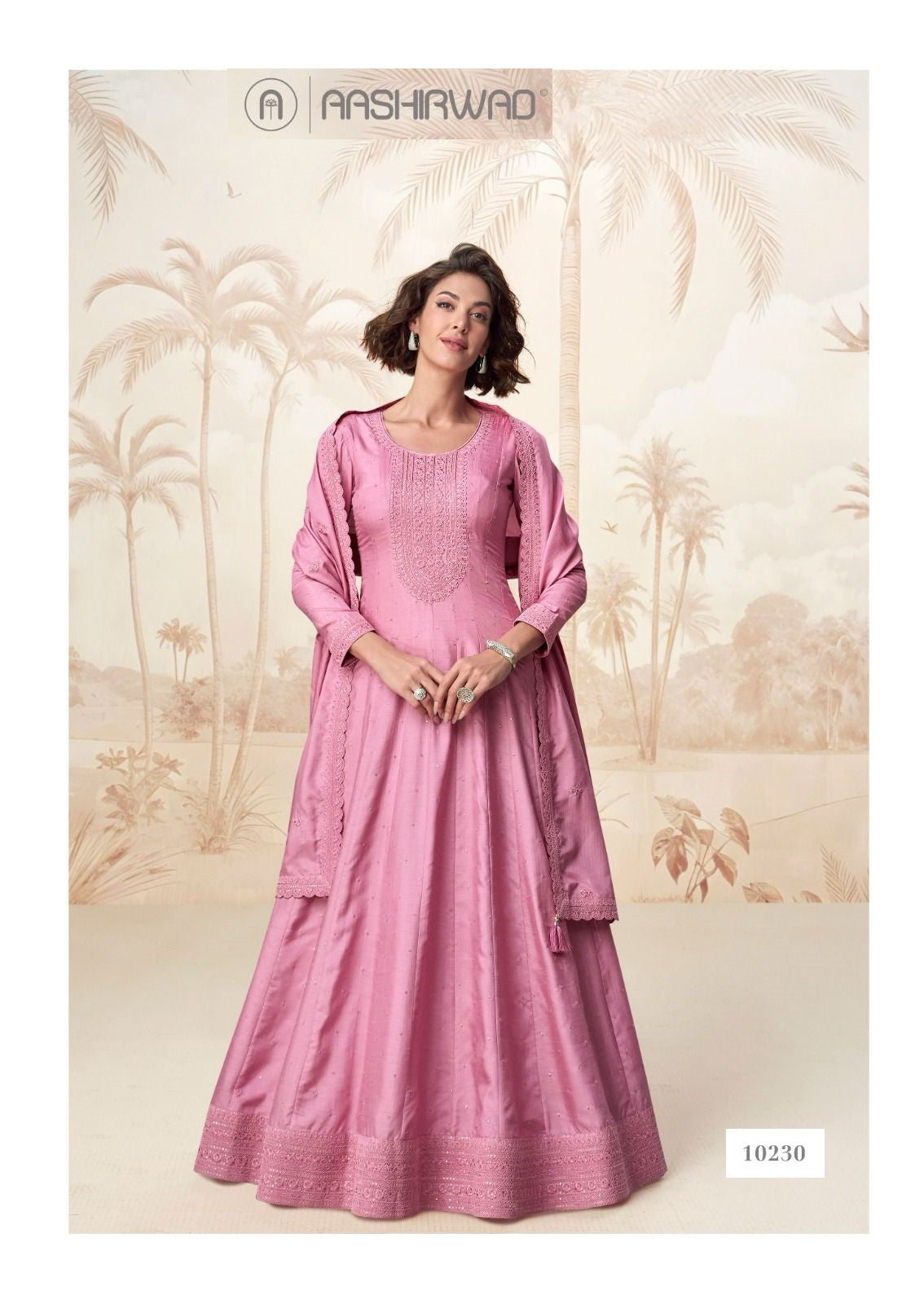रागिनी आशीर्वाद क्रिएशन गाउन दुपट्टा सेट की कीमत और फैब्रिक विवरण: