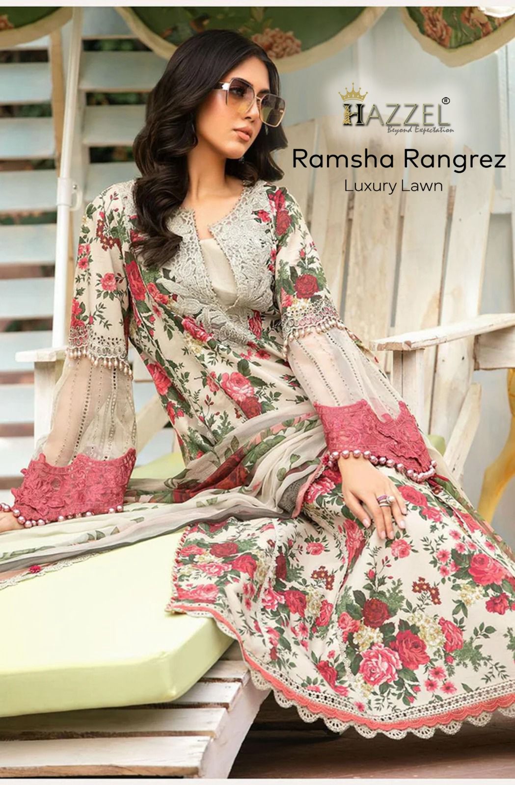 रामशा रंगरेज़ लक्ज़री लॉन हेज़ल कॉटन कढ़ाई कराची सलवार सूट