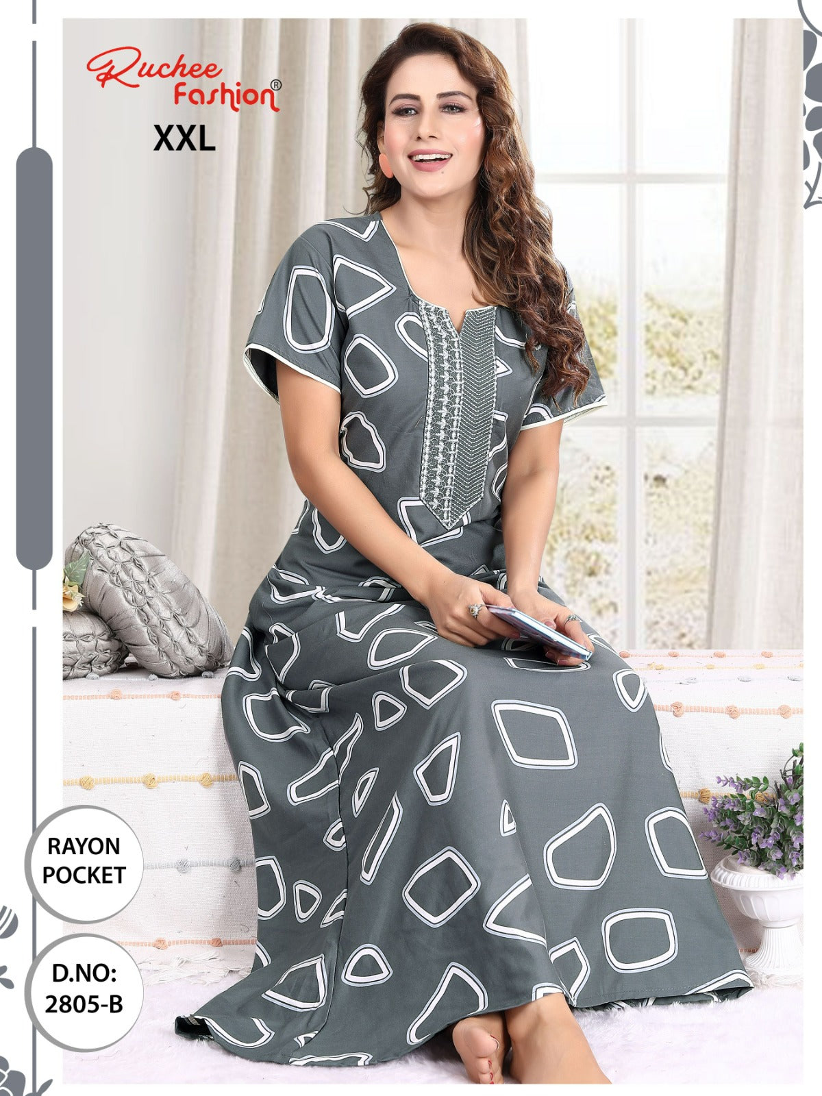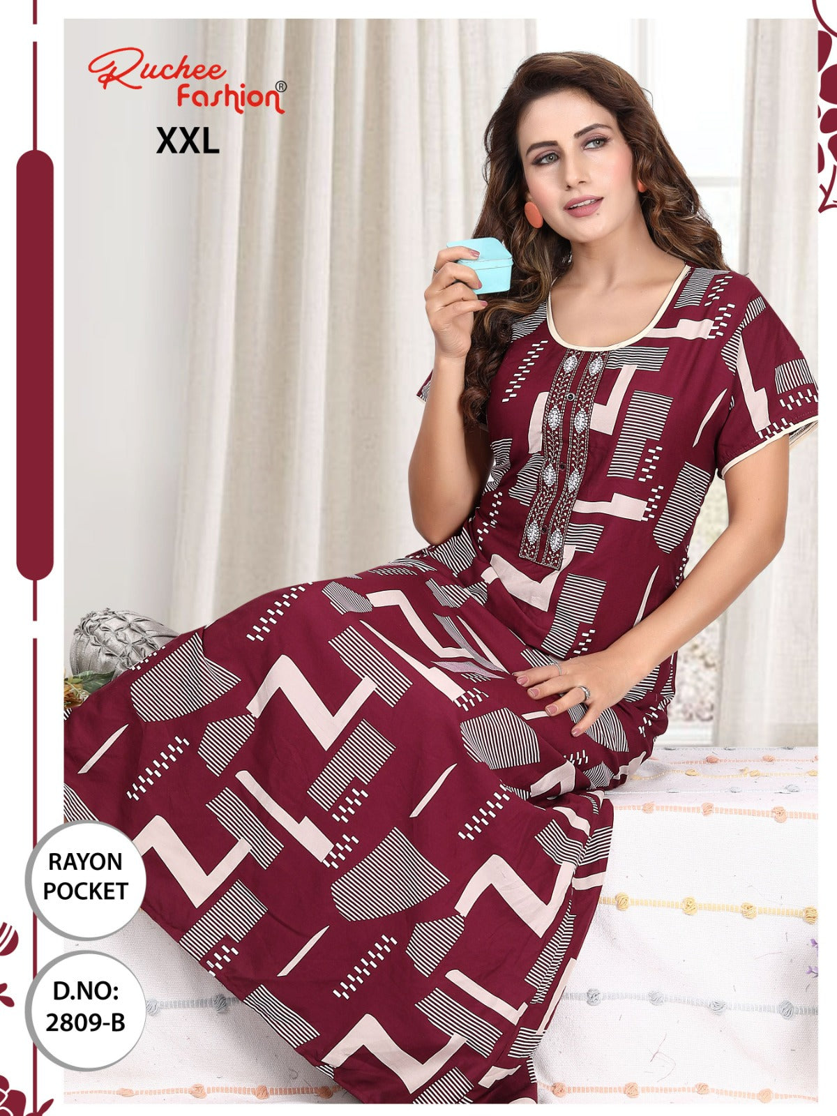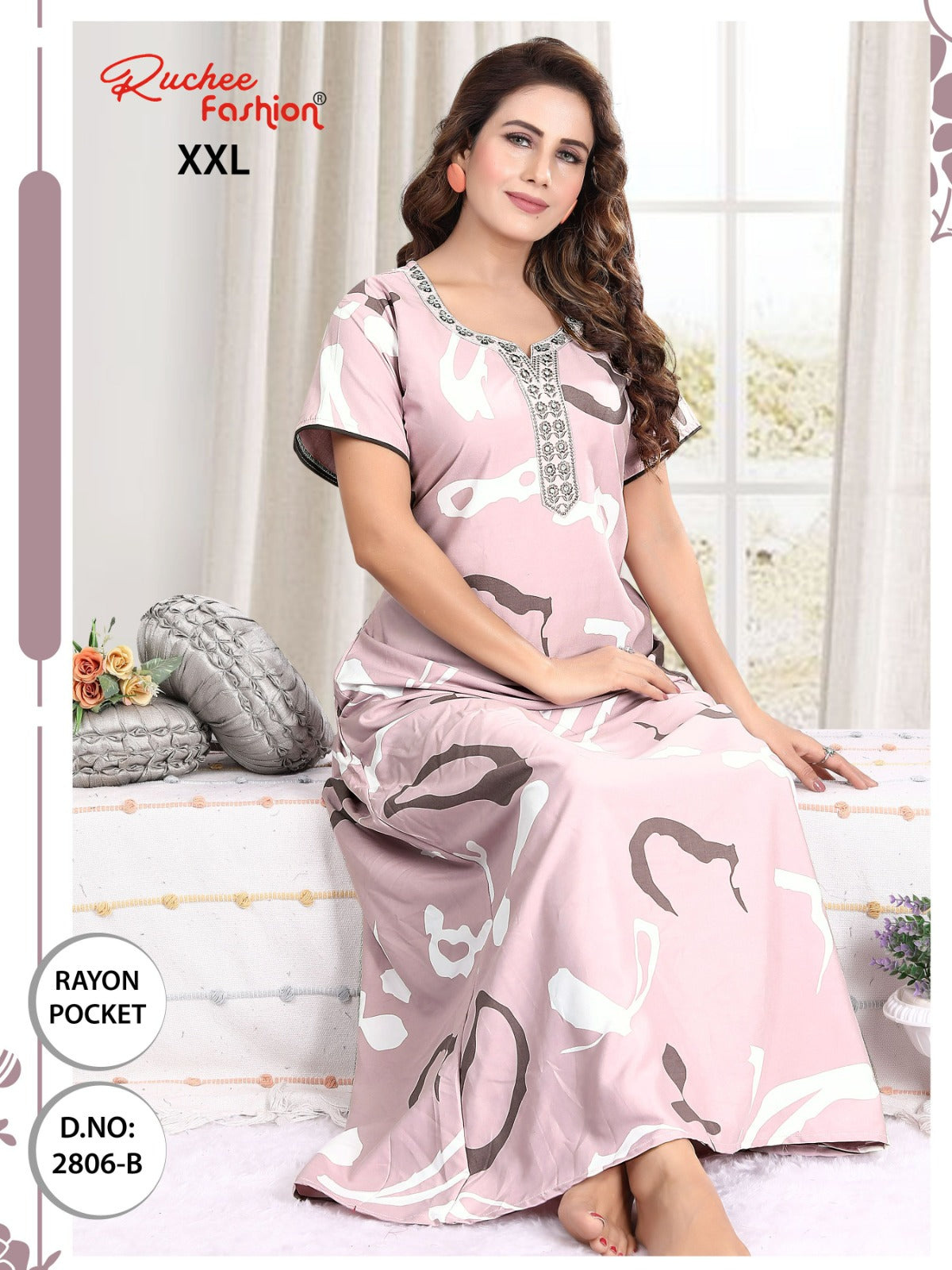 रेयॉन 2Xl रुची फैशन नाइट गाउन की कीमत और फ़ैब्रिक विवरण: