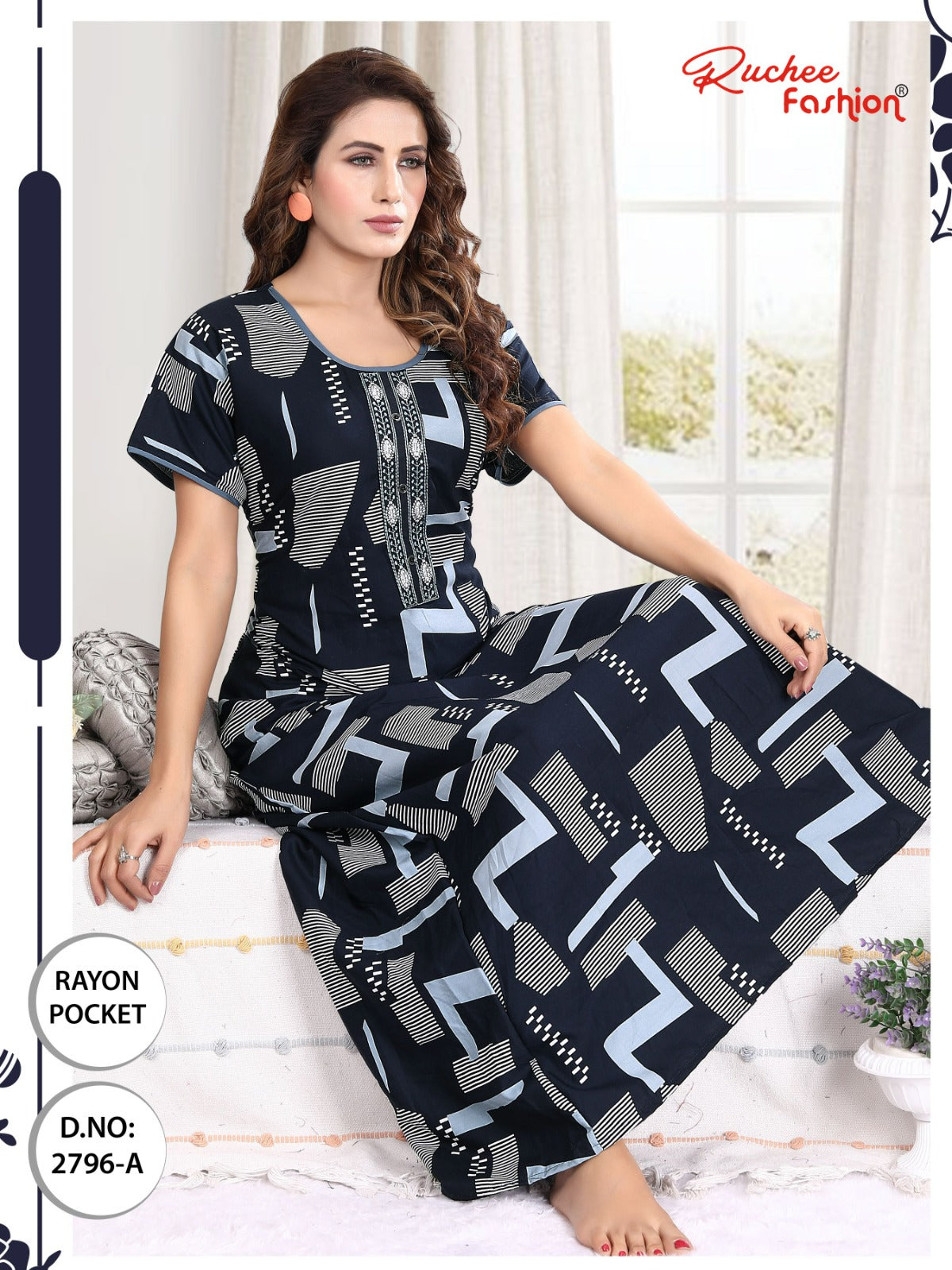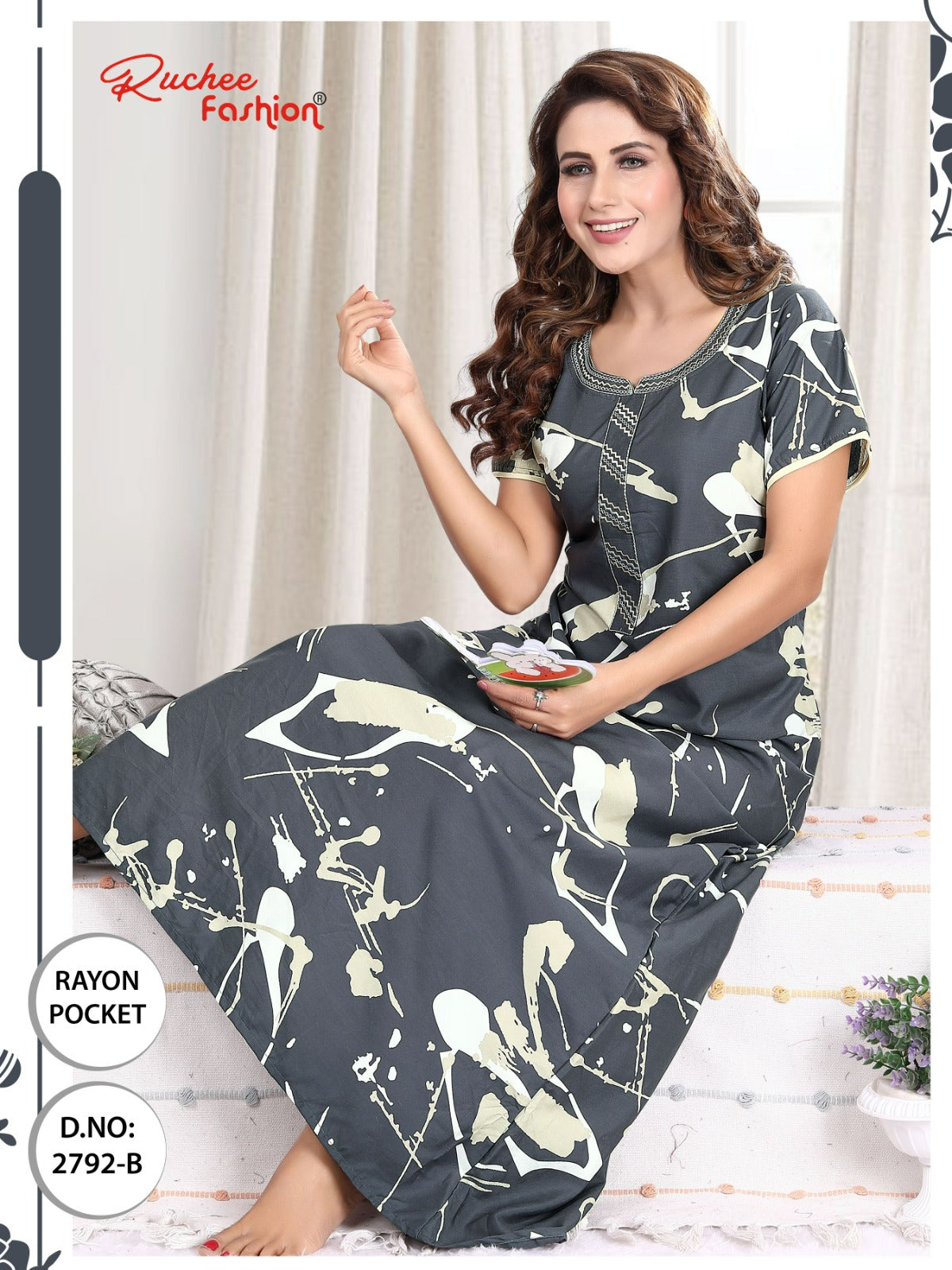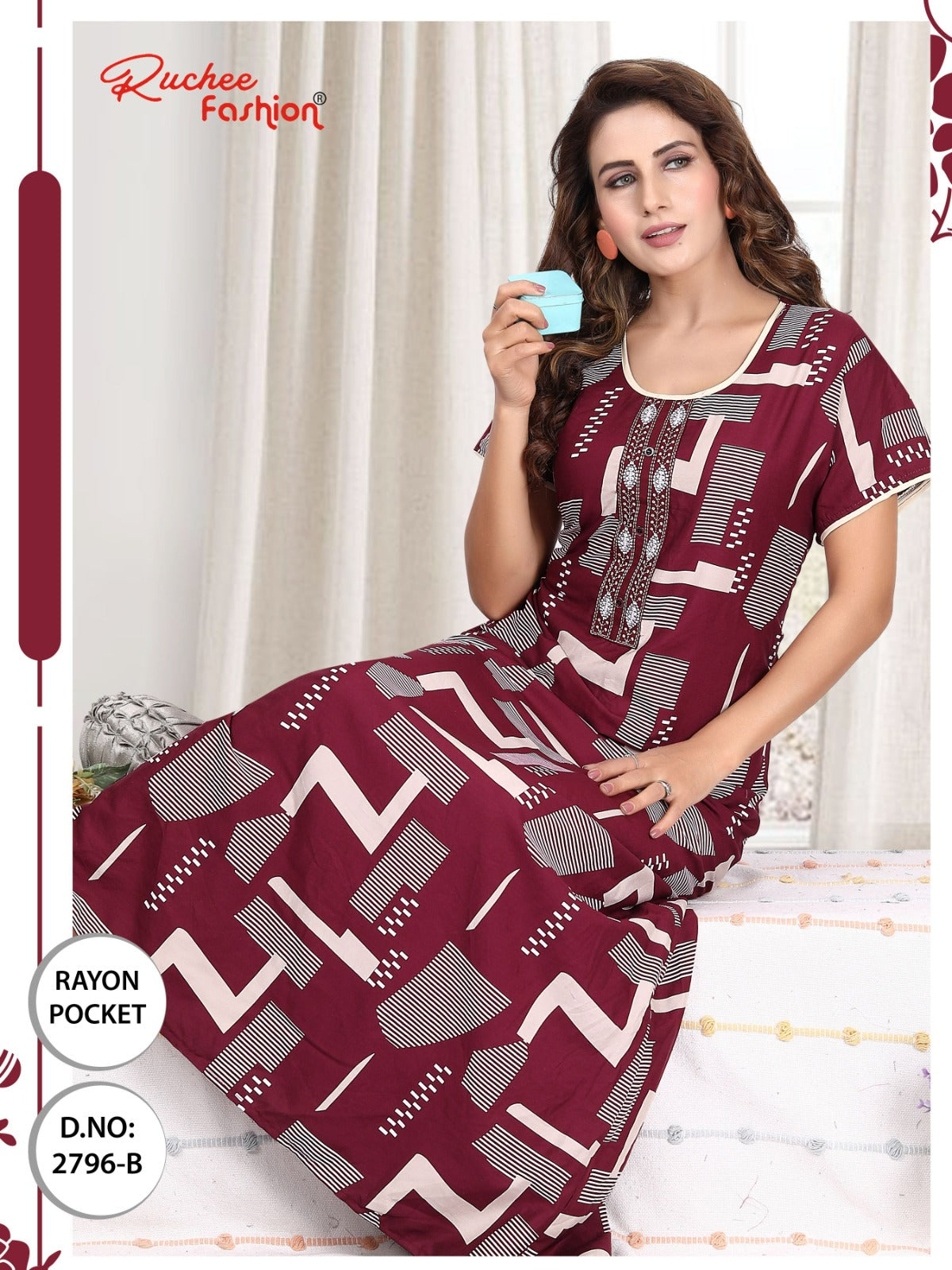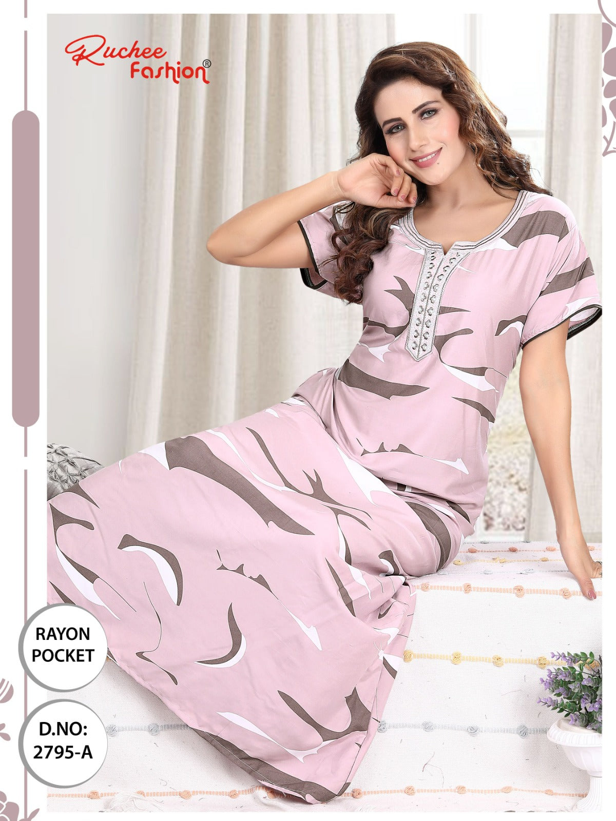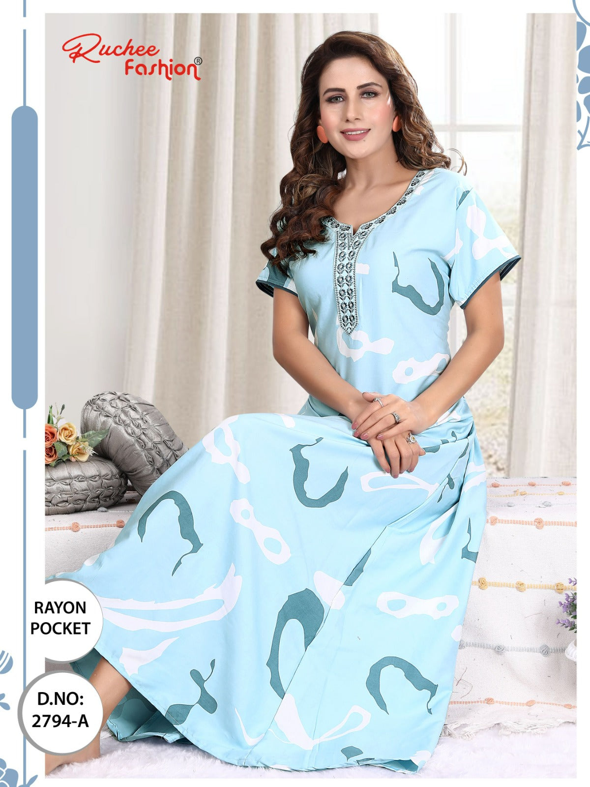रेयॉन पॉकेट 170325 रुची फैशन एम्ब्रॉयडरी नाइट गाउन
