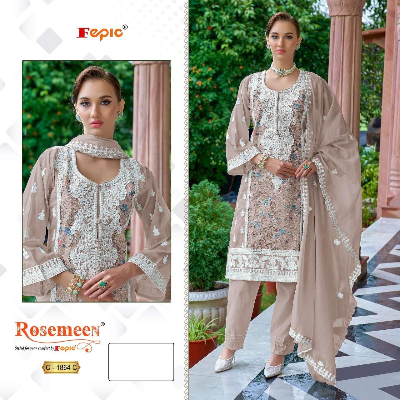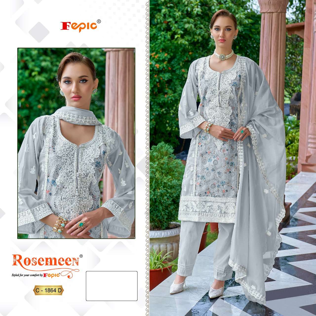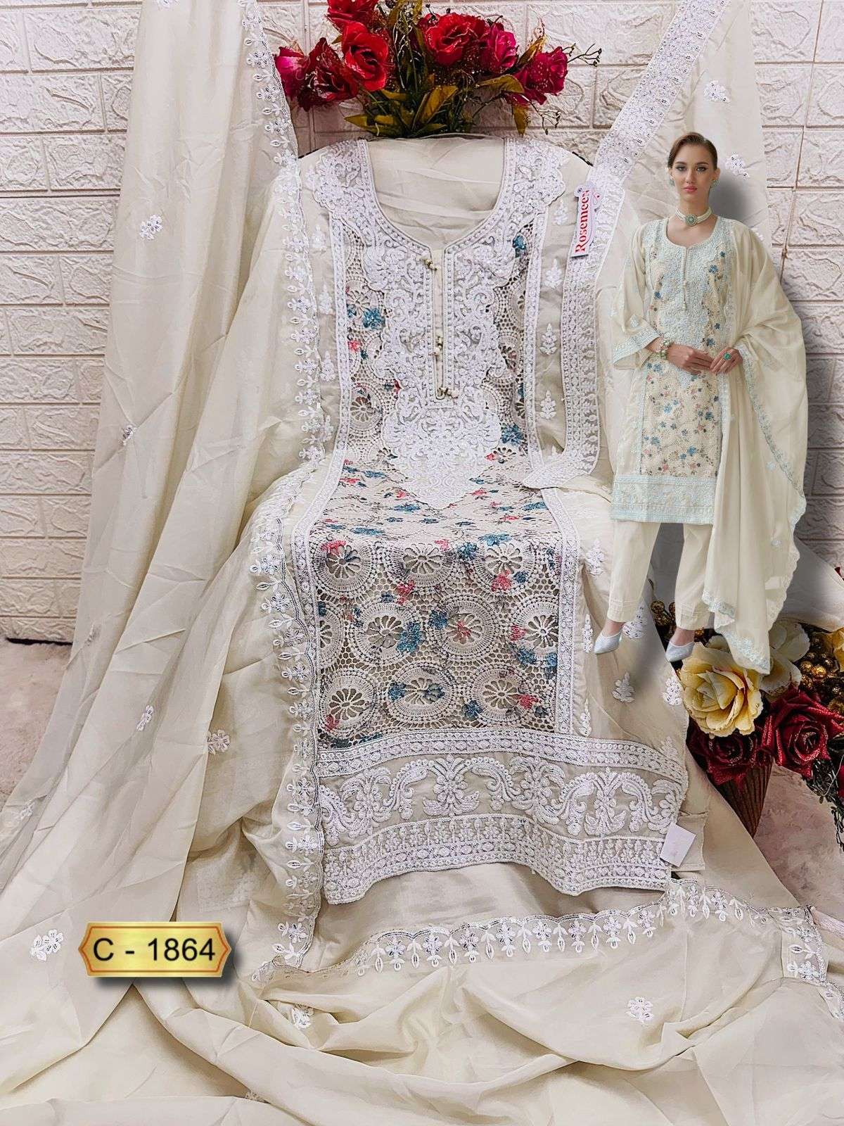 रोज़मीन सी 1864 फेपिक ऑर्गेंजा पाकिस्तानी सलवार सूट थोक मूल्य