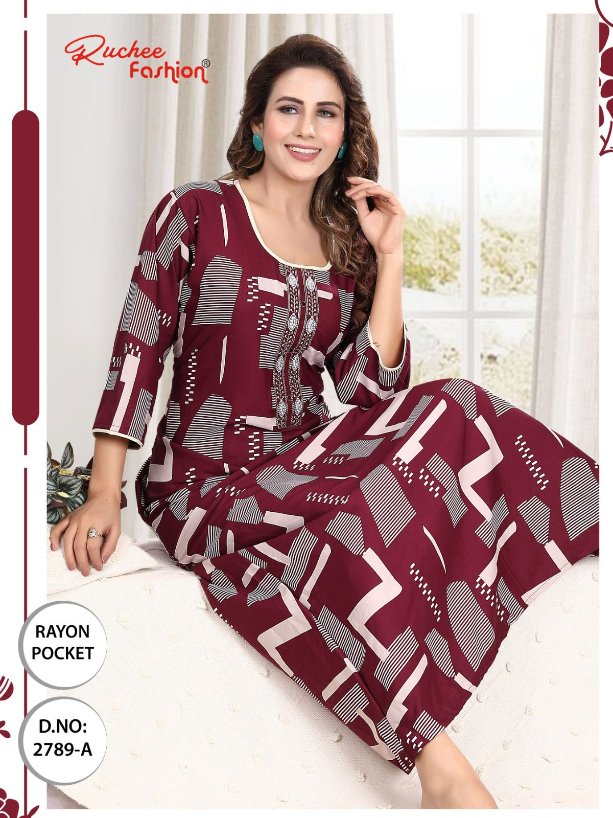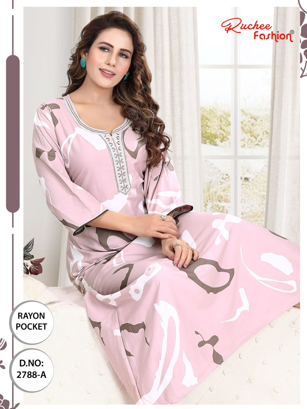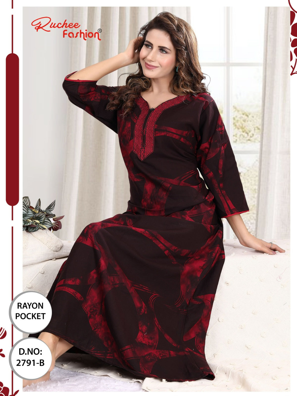 - फ़ैब्रिक विवरण: रेयॉन पॉकेट और कढ़ाई वाली नाइटी 3/4 स्लीव के साथ लंबाई - लगभग 56