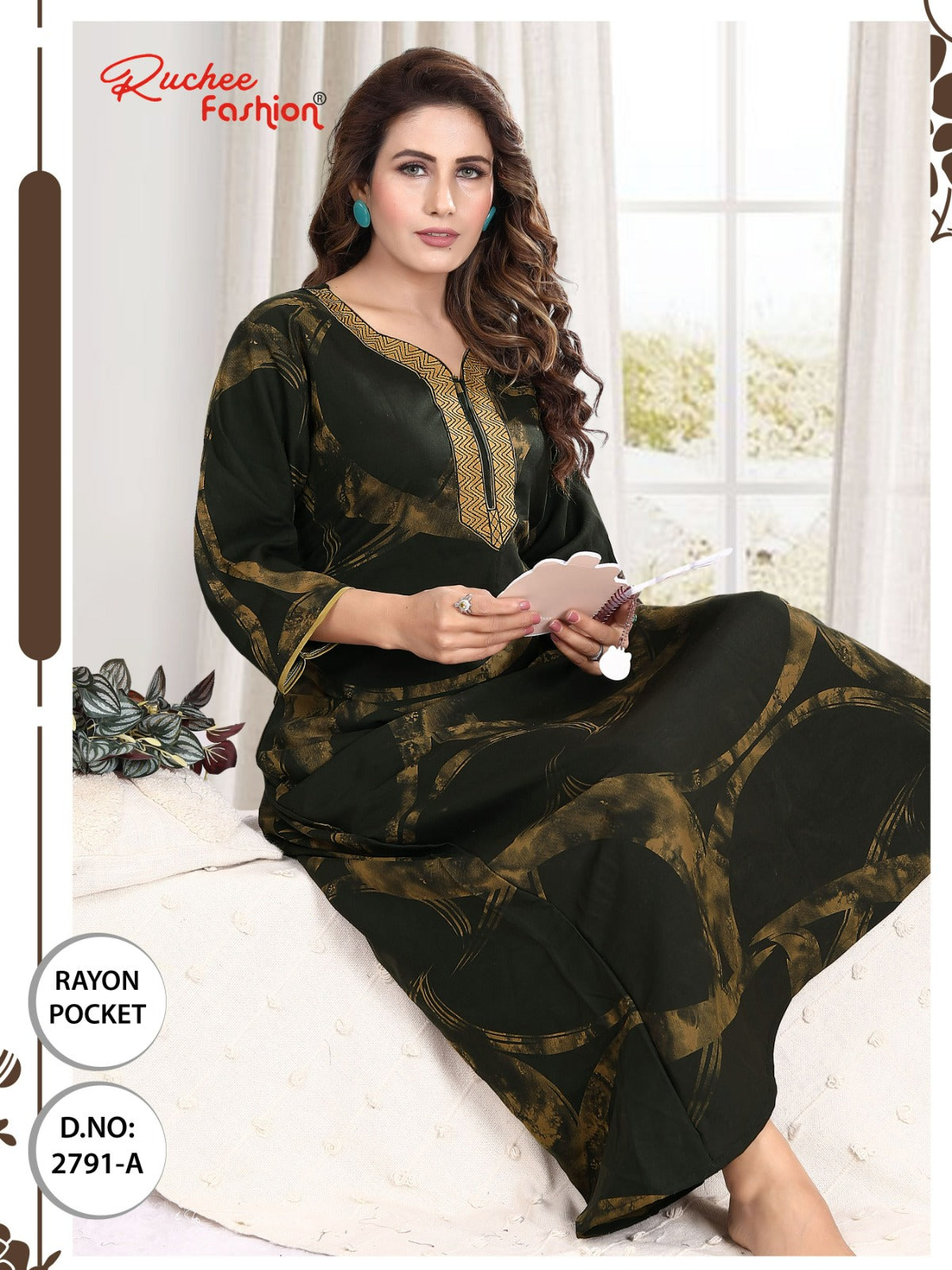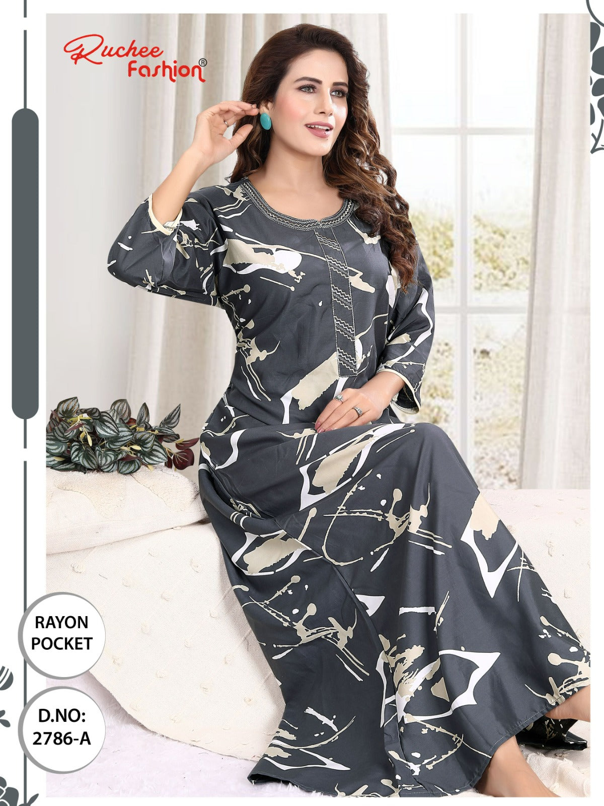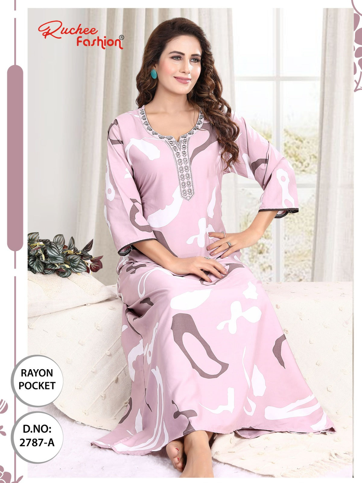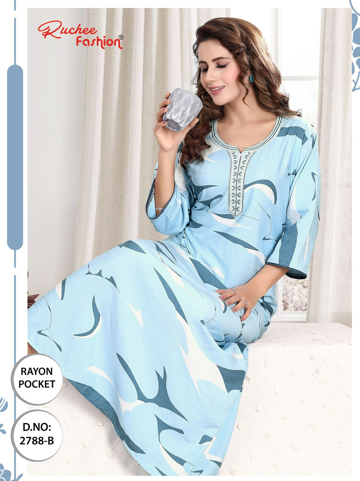 - फ़ैब्रिक विवरण: रेयॉन पॉकेट और कढ़ाई वाली नाइटी 3/4 स्लीव के साथ लंबाई - लगभग 56