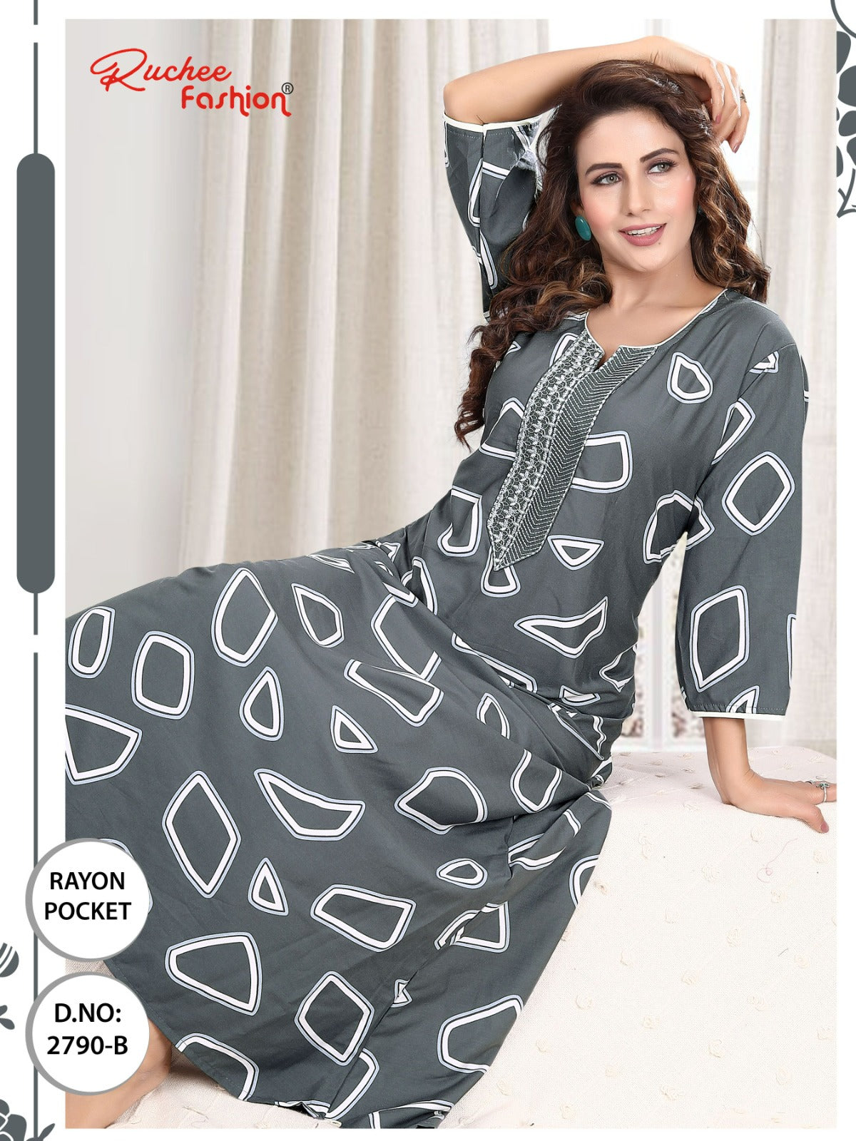 तीन चौथाई आस्तीन रेयान पॉकेट रुची फैशन नाइट गाउन की कीमत और कपड़े का विवरण: