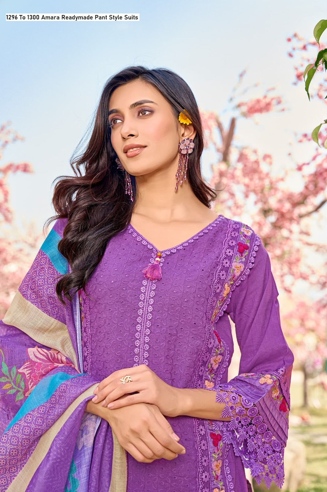 1296 To 1300 Amara Pure Cotton Handwork Readymade Pant Style Suits