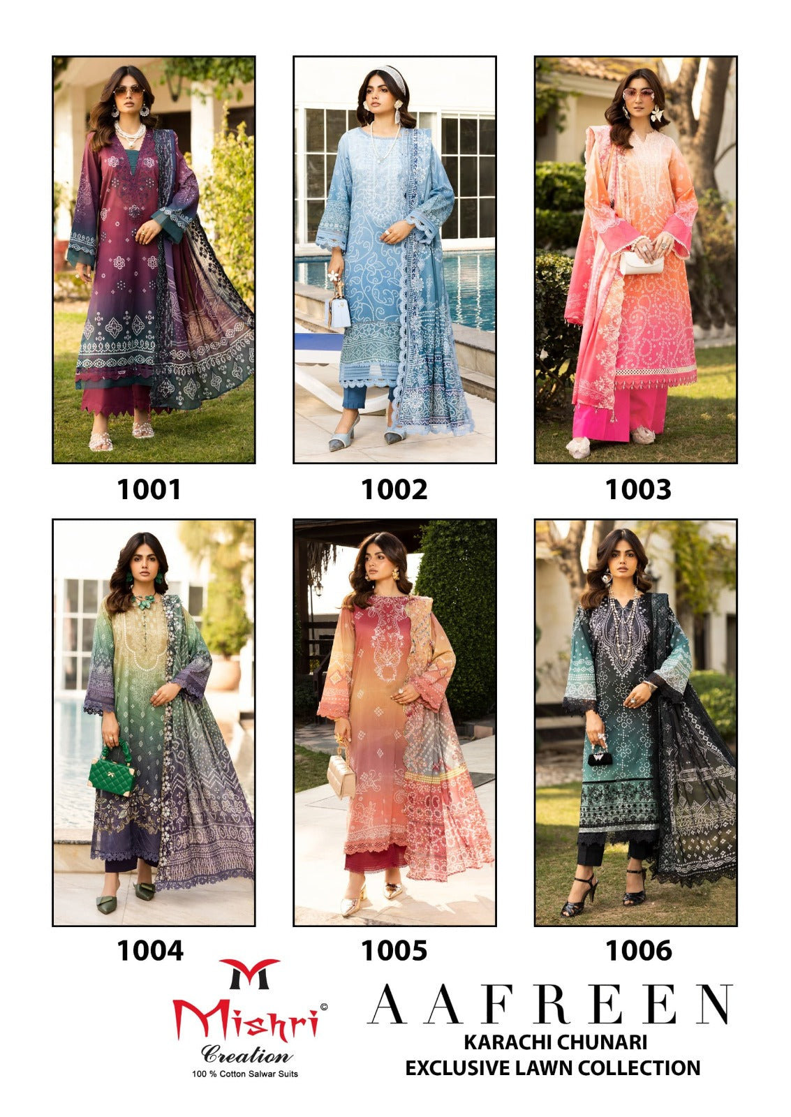 Aafreen Lawn Collection Mishri Lawn Cotton Karachi Salwar Suits Wholesaler Ahmedabad