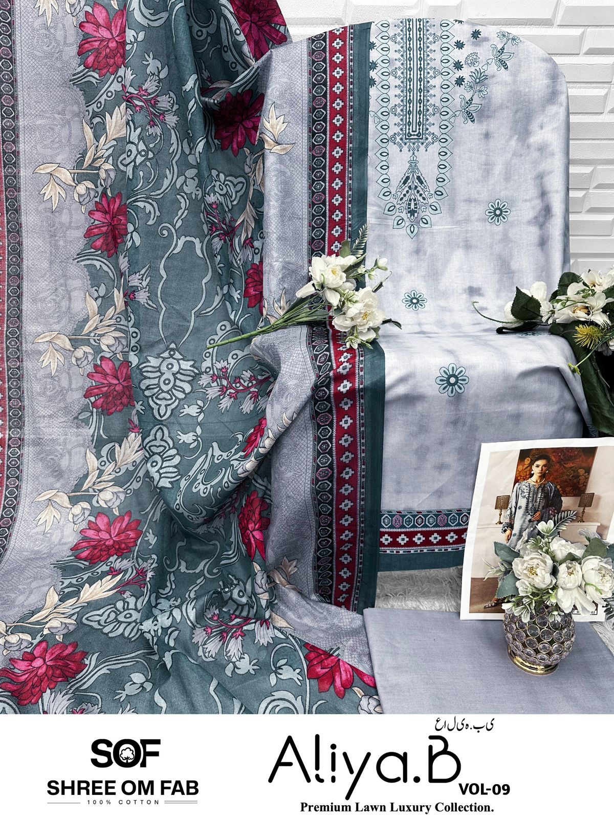 Aliya B Vol 9 Shree Om Lawn Open pic Karachi Salwar Suits Wholesale Price