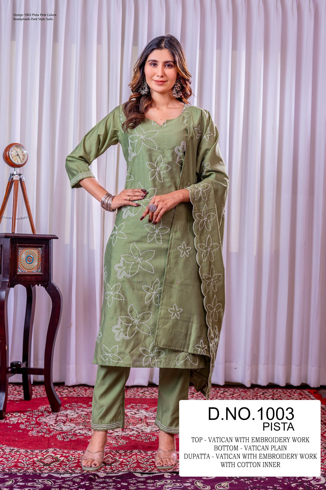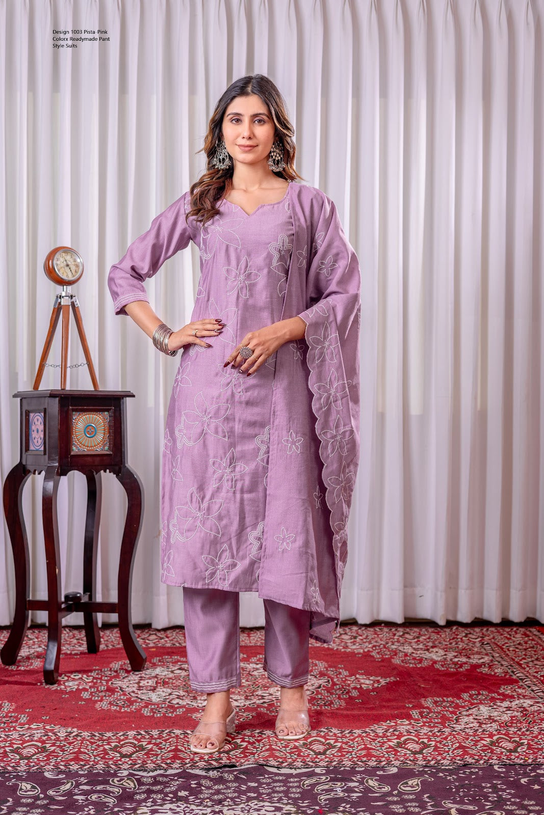 Design 1003 Pista-Pink Colorx Embroidery Work Readymade Pant Style Suits
