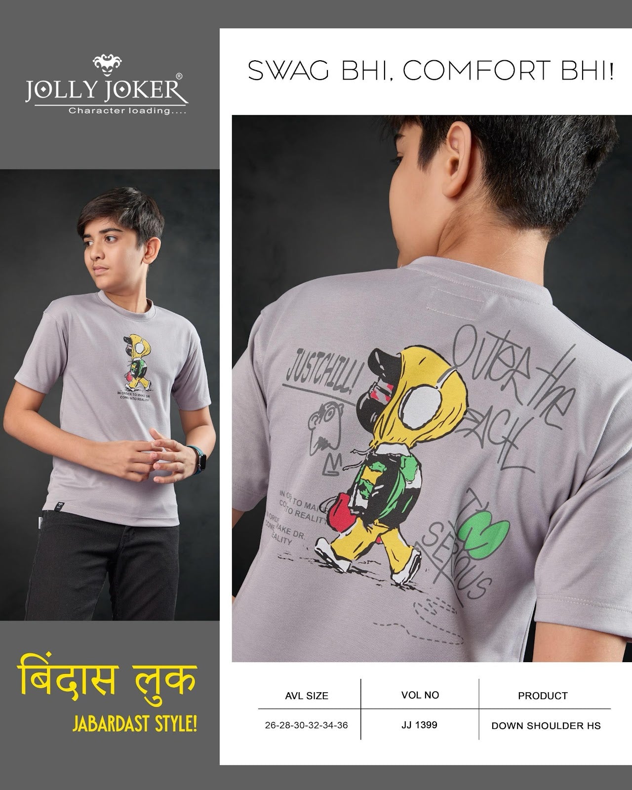 Drop Shoulder Jj 1399 Jolly Joker Canvas Front-Back Print Boys Tshirt