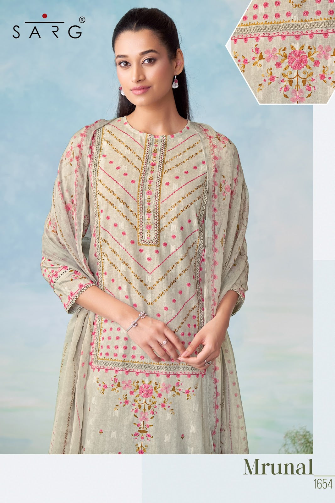 Mrunal Sarg Pant Style Suits Price and Fabric Details: