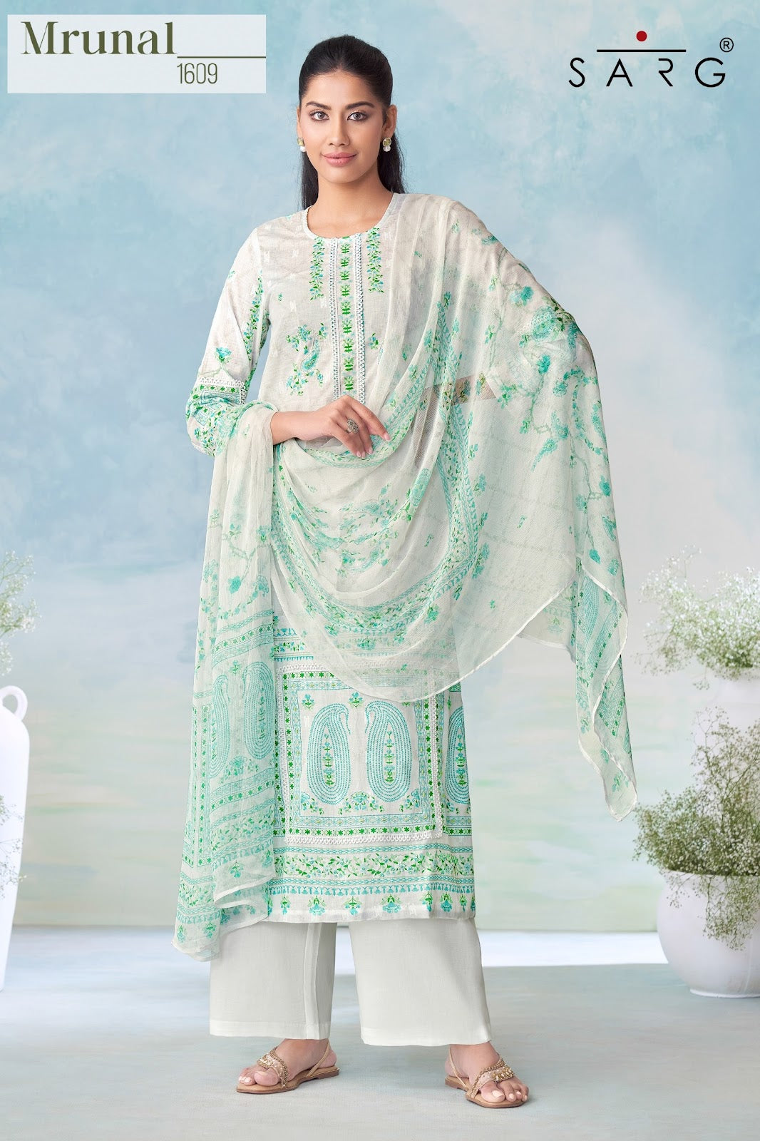 Mrunal Sarg Pure Cotton Zari Digital Print Pant Style Suits