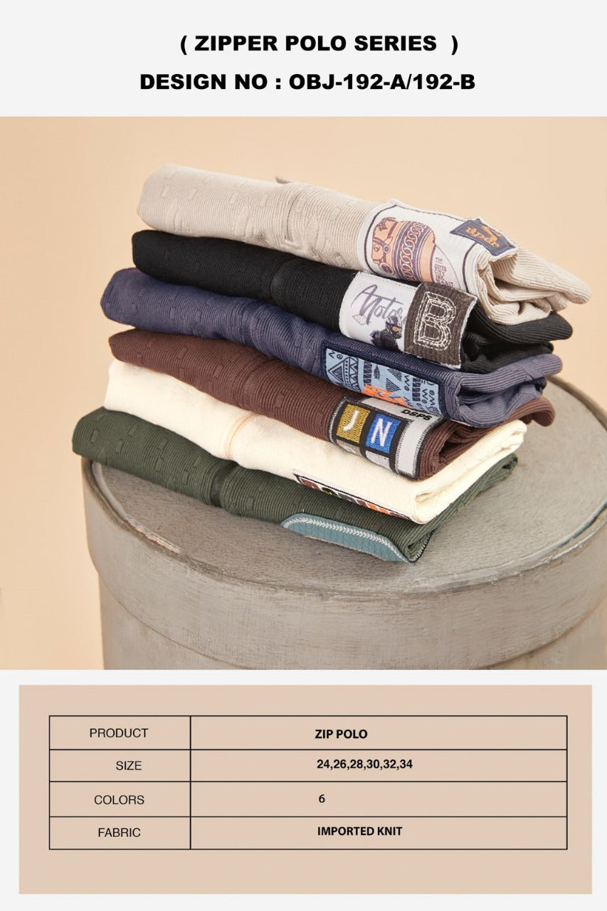 - Fabric Detail: Imported Jacquard (Zipper Polo With Embroidery Patch Work) Packing - Zip Pouch 6 Colours And 6 Size - 36 Pcs
