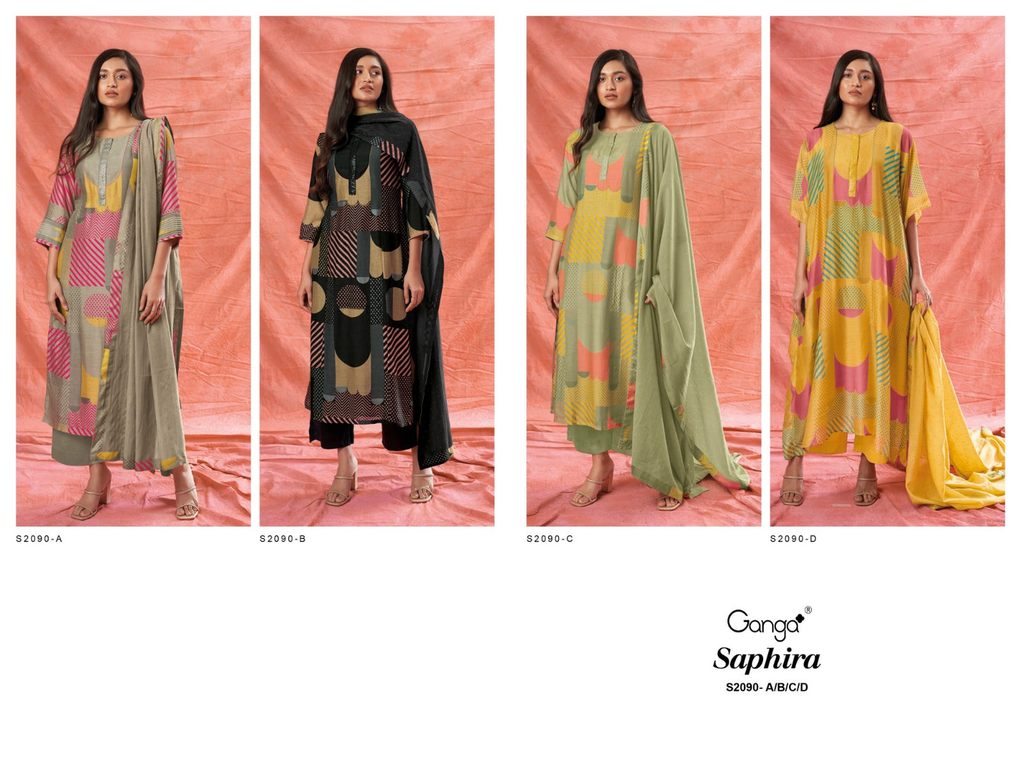 S2090-Abcd Saphira Ganga Pashmina Suits Price and Fabric Details: