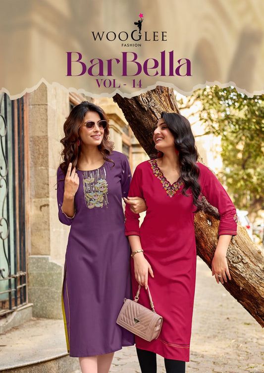Barbella Vol 14 Wooglee Rayon Long Straight Kurti Supplier