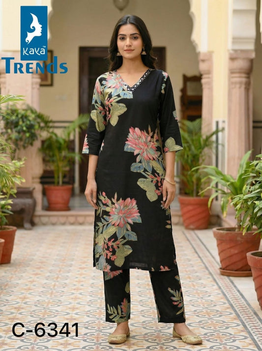 Design 6340-6342 Kaya Trends Rayon Kurti Pant Set Manufacturer India