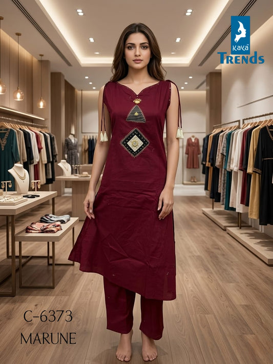 Design 6373 Kaya Trends Cotton Kurti Pant Set Supplier