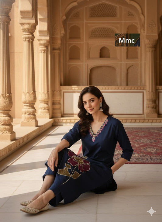Indigo Flower Mmc Cotton Kurti Pant Set Manufacturer Gujarat